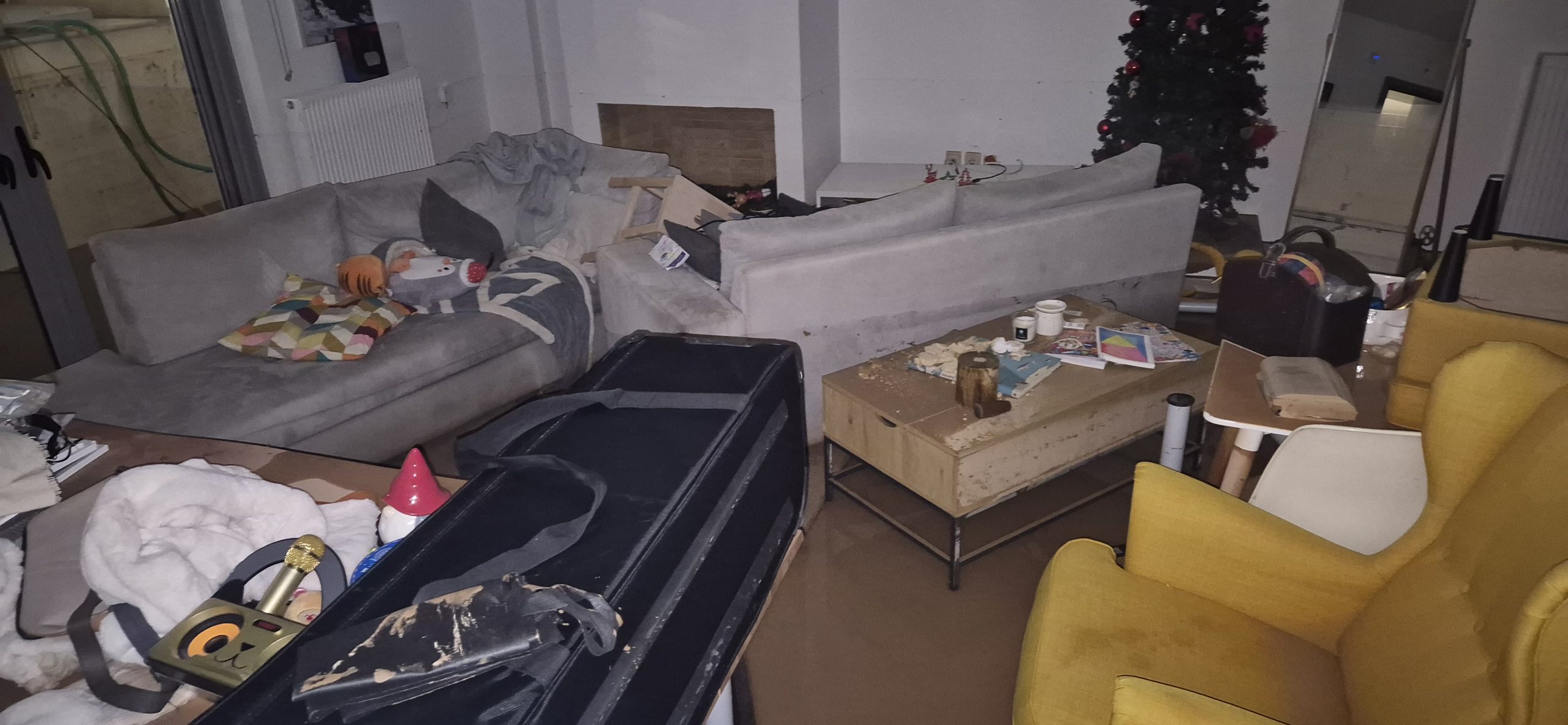 Η Πυροσβεστική ήρθε 14 ώρες μετά: κατέγραψε το γεγονός, χωρίς να δώσει οποιαδήποτε λύση. Στο σπίτι δεν υπήρχε ακόμη ρεύμα. Στην επικοινωνία τους με τον Δήμο, ζητήθηκε από τον Κωνσταντίνο και την Ιωάννα να μη μεταφέρουν κανένα έπιπλο ή συσκευή έξω από το σπίτι, καθώς έπρεπε να έρθει πραγματογνώμονας και να καταγράψει με τη σειρά του την καταστροφή. «Τα νερά αυτά προέρχονταν από τα φρεάτια του Δήμου, η μυρωδιά ήταν και παραμένει αφόρητη. Ευτυχώς με τη βοήθεια της οικογένειάς μας και των φίλων μας τα βγάλαμε τελικά όλα έξω. Στην αρχή δεν είχαμε καταλάβει ότι θα πρέπει να πεταχτούν. Ήλπιζα ότι ένας βιολογικός καθαρισμός θα ήταν αρκετός, όμως πληροφορηθήκαμε ότι αυτό δεν μπορεί και δεν πρέπει να γίνει. Πρέπει να ξυστούν τοίχοι, να ξηλωθούν ντουλάπες και ντουλάπια, να αγοράσουμε έπιπλα από την αρχή. Όλα από την αρχή, ένα ολόκληρο σπίτι».