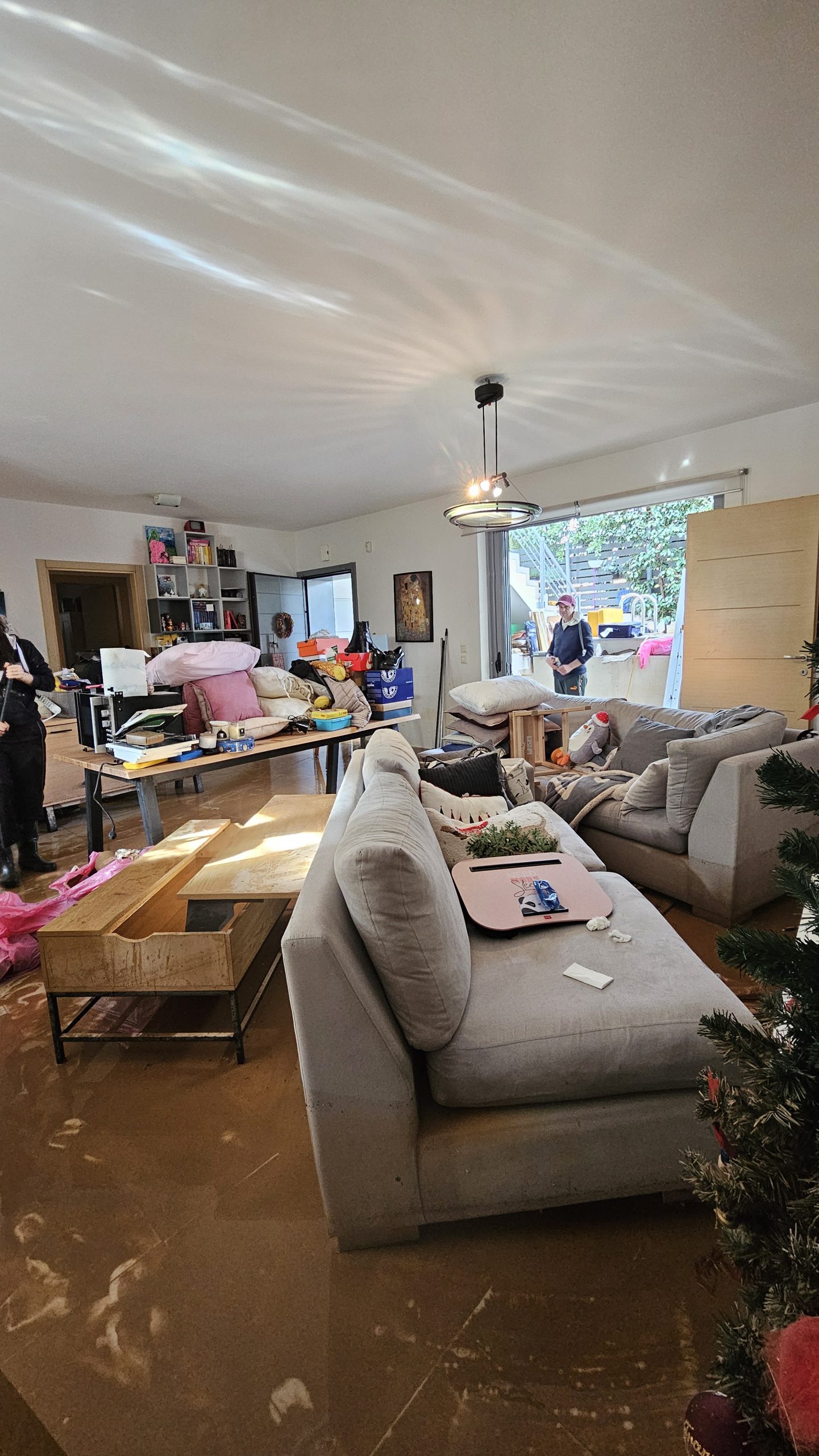 «Το σπίτι καταστράφηκε ολοσχερώς. Οι ντουλάπες φούσκωσαν από τα νερά, ο καναπές επέπλεε στη μέση του σαλονιού, όλες οι ηλεκτρικές συσκευές καταστράφηκαν, κυριολεκτικά δεν έμεινε τίποτα. Το ίδιο και τα προσωπικά μας αντικείμενα, τα ρούχα μας, ο επαγγελματικός εξοπλισμός μας».