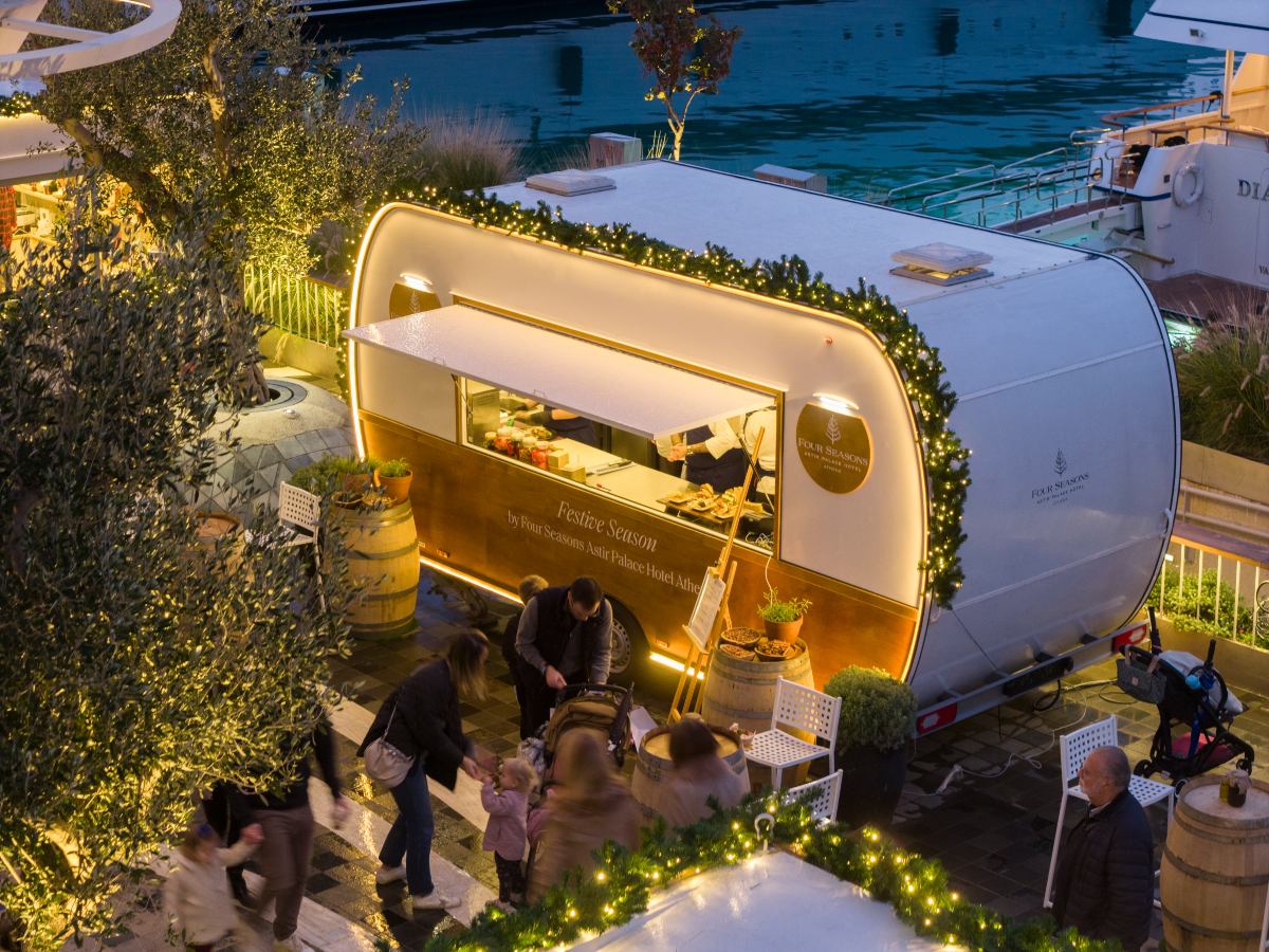 Το γαστρονομικό σκέλος κινείται σε καθαρά festive ρυθμούς, με την κουζίνα του Four Seasons Astir Palace Hotel Athens, street food ασιατικής έμπνευσης από το Ekiben, comfort food και ροφήματα από το Όβεν, αυθεντικά panettone από το ιστορικό Cova του Μιλάνου, Glühwein και Christmas cocktails από το Bagatelle και signature παγωτά με εποχικές γεύσεις από το Kayak.