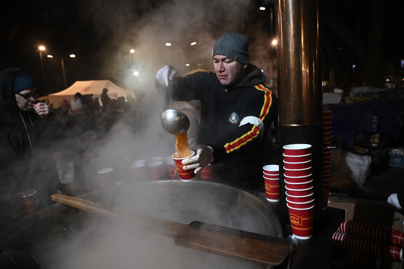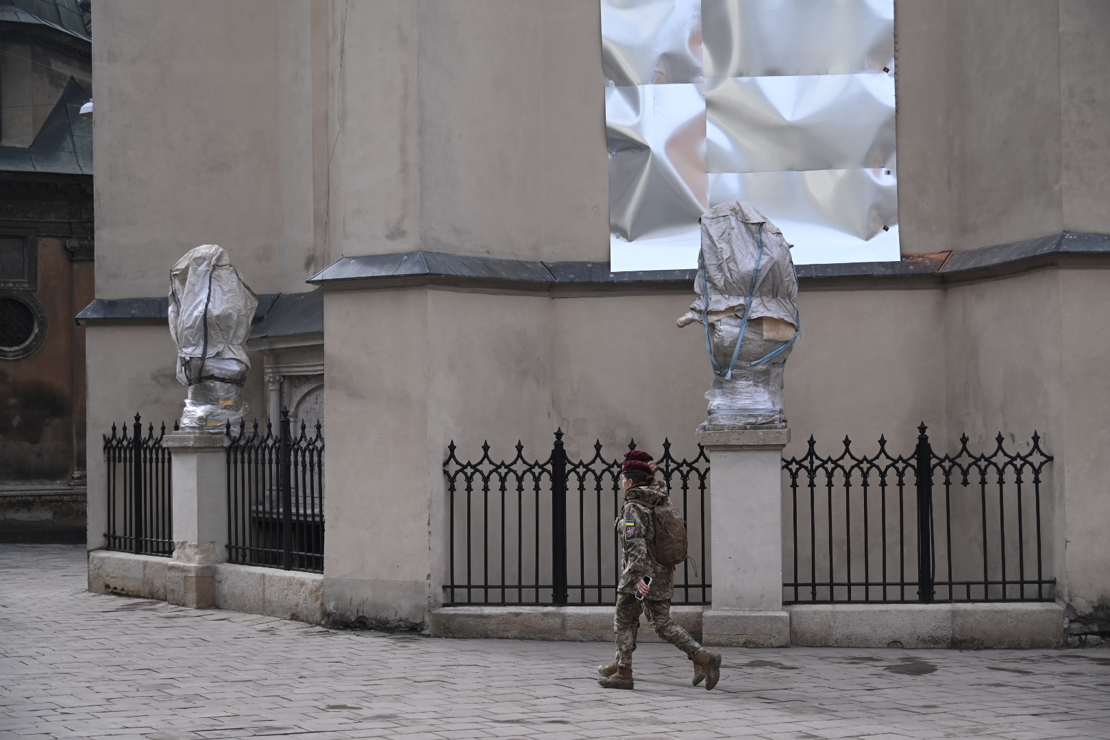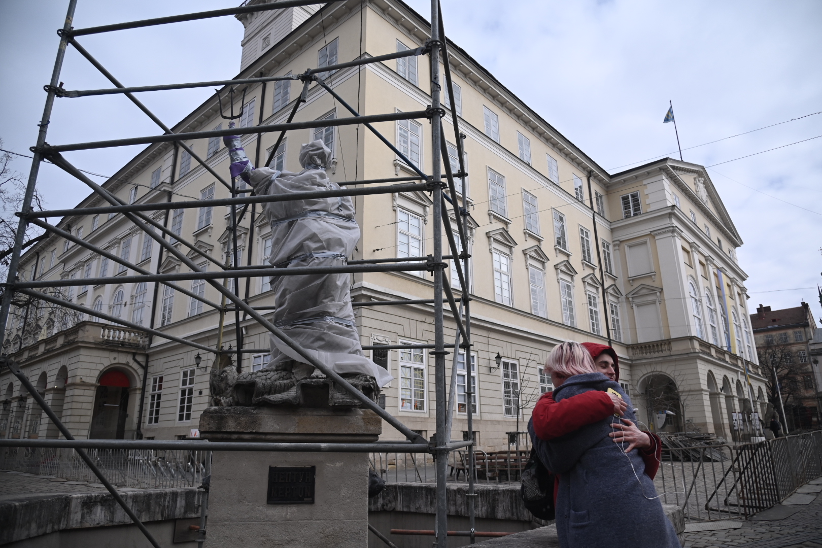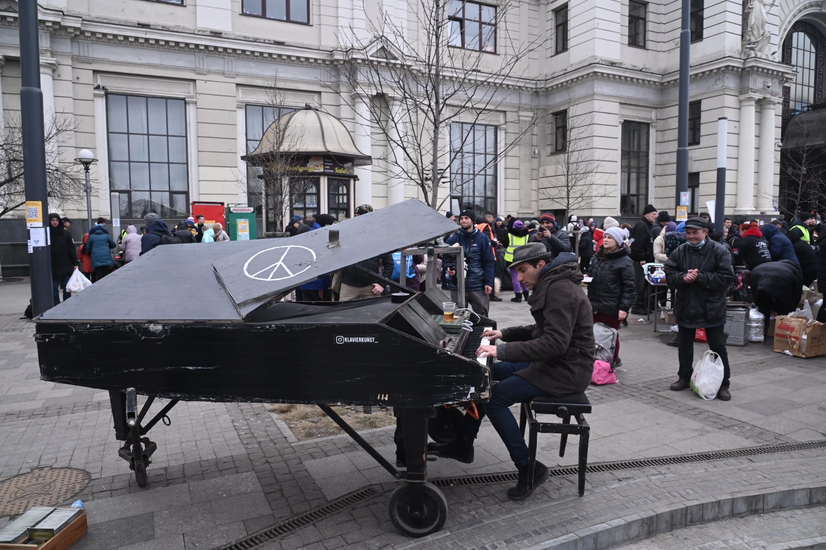 Εκεί υπήρχαν αντίσκηνα για να βοηθήσουν τον κόσμο που κατέβαινε από το τρένο, από εθελοντές. Είχαν στηθεί πρώτες βοήθειες, μαγειρείο για να μπορεί να πάρει ο κόσμος ένα κομμάτι ψωμί έστω, ακόμη και γλυκά για να δίνουν στα παιδιά. ΜΚΟ, εθελοντές και όποιος γενικά μπορούσε να βοηθήσει με οποιονδήποτε τρόπο ήταν εκεί. Θυμάμαι χαρακτηριστικά έναν Βέλγο, ο οποίος είχε μεταφέρει οδικώς ένα πιάνο και έπαιζε μουσική για τους ανθρώπους που κατέβαιναν από τα τρένα. Επίσης, στην παλιά πόλη, βλέπαμε συνεργεία του Δήμου να καλύπτουν τα αγάλματα. Αμέσως ρωτήσαμε γιατί το κάνουν αυτό και μας είπαν πως είναι μνημεία προστατευόμενα της UNESCO και ότι, σε περίπτωση βομβαρδισμού, τουλάχιστον να μπορούν να έχουν τα κομμάτια, ώστε να τα ενώσουν και πάλι. Τα τύλιγαν λοιπόν με νάιλον. Το ίδιο έκαναν και σε παλιές εκκλησίες, με λαμαρίνες, αλλά και τα μαγαζιά, οι ιδιοκτήτες των οποίων τα κάλυπταν με μουσαμάδες, για να περισώσουν ό,τι είναι δυνατό να σωθεί.