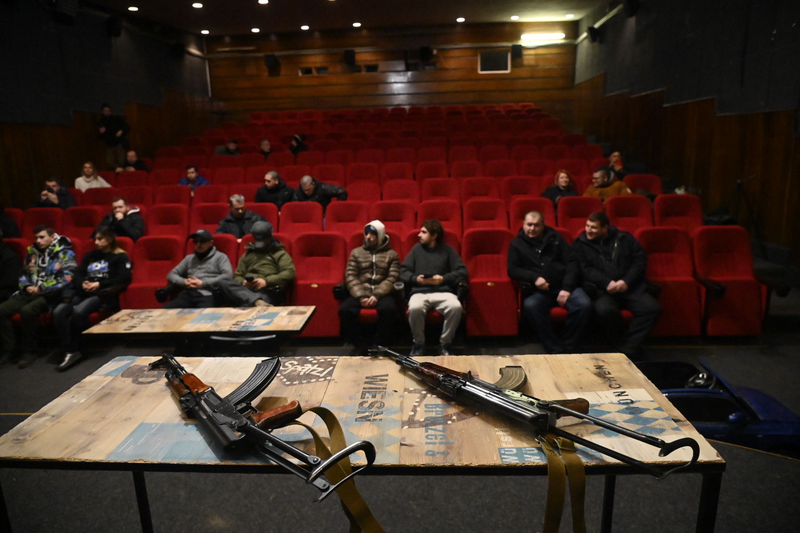 Τα θέατρα επίσης είχαν μετατραπεί σε κέντρα φιλοξενίας προσφύγων. Μια κοπέλα μου έδειξε μια φωτογραφία με τον άντρα της, και μου είπε στα αγγλικά πως «αυτό είναι πριν χαιρετήσω τον άντρα μου». Ήταν φωτογραφία από το Κίεβο, με τον σύζυγό της, εκείνη και την κόρη τους. Η κοπέλα με την κόρη της ήταν στο θέατρο, που πια είχε γίνει αίθουσα φιλοξενίας, όμως ο σύζυγός της έπρεπε να πάει να πολεμήσει. Στην φωτογραφία μάλιστα φορούσε τη στολή του στρατιώτη και είχε μαζί του το όπλο για να φύγει. Όλες οι αίθουσες τέτοιου τύπου, σινεμά, πανεπιστήμια κλπ, έχουν γίνει κέντρα βοήθειας, είτε για φιλοξενία, είτε για οποιονδήποτε άλλο σχετικό σκοπό. Σε κάποια για παράδειγμα γινόταν εκπαίδευση των πολιτών όσον αφορά τα όπλα. Όλο το κλίμα ήταν πολεμικό, όλος ο κόσμος έκανε οτιδήποτε μπορούσε για να προετοιμαστεί για το χειρότερο.