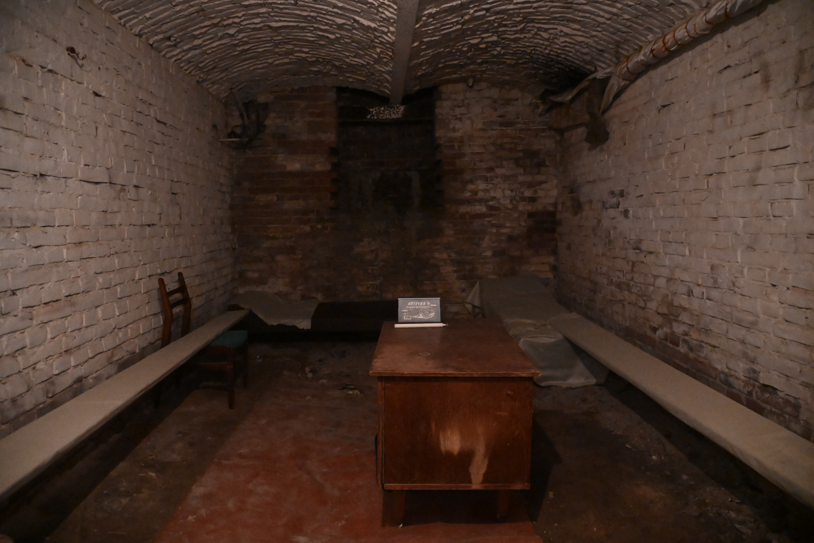 Πρώτα από όλα, αξίζει να πούμε πως η χώρα αυτή, λόγω της ιστορίας με τη Σοβιετική Ένωση, έχει ήδη δημόσια καταφύγια. Κατεβαίνεις λοιπόν αρκετά σκαλιά και μπαίνεις σε έναν χαμηλοτάβανο χώρο στον οποίο υπάρχουν μια-δυο τουαλέτες, ένα τραπέζι, λάμπες και μερικά κρεβάτια. Υπάρχει αυστηρά μόνο ό,τι χρειάζεσαι για να επιβιώσεις.
