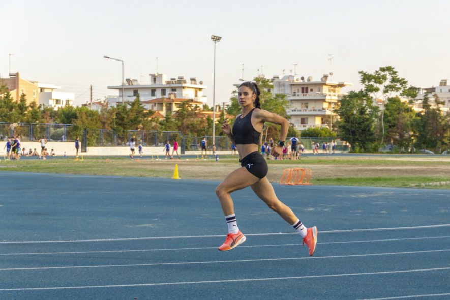 Τη συναντήσαμε αμέσως μετά την προπόνησή της στο Δημοτικό Στάδιο της Γλυφάδας και, μέσα από τη συζήτησή μας καταλάβαμε ότι πρόκειται όχι απλώς για ένα κορίτσι με γρήγορα πόδια, αλλά επίσης με κοφτερό μυαλό και μια μεγάλη ψυχή.