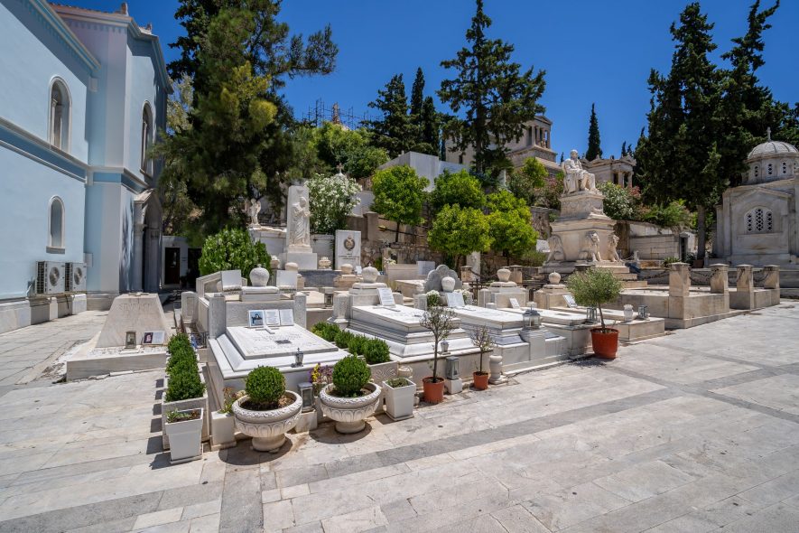 Η βόλτα μου στο πρώτο νεκροταφείο δεν έχει αλλάξει και δεν θα αλλάξει ποτέ. Από τη Μάρκου Μουσούρου ανοίγει η πίσω πόρτα του Νεκροταφείου και θυμάμαι η γιαγιά μου ντυμένη στα μαύρα να με παίρνει από το χέρι και να πηγαίνουμε λουλούδια στο τάφο του παππού μου. Αφού καθόμασταν λίγο, σκούπιζε τα δάκρυά της και φεύγοντας με κερνούσε κουλουράκια. Έτσι εξοικειώθηκα με το τοπίο. Ποτέ δεν με φόβιζε. Ακόμα και όταν γύριζα βραδάκι από το γηπεδάκι που παίζαμε με τα παιδιά που ήταν μεσοτοιχία με το νεκροταφείο, αυτό που σήμερα είναι γήπεδο μπάσκετ, απολάμβανα να χαζεύω τα καντηλάκια που φέγγιζαν πάνω στους τάφους. Κατά κάποιο τρόπο μου φαινόταν ότι είχαν πιο ζωή από αυτό που πραγματικά ήταν.
