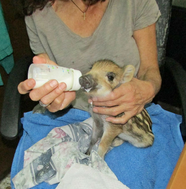 Αγριογουρουνάκι που βρέθηκε στην Κόνιτσα με πρόβλημα στα πίσω πόδια, πιθανότατα από πτώση.