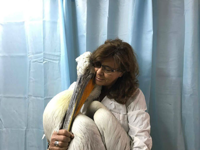 Η Πρόεδρος του συλλόγου, Μαρία Γανωτή, με έναν αργυροπελεκάνο