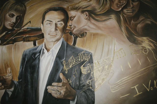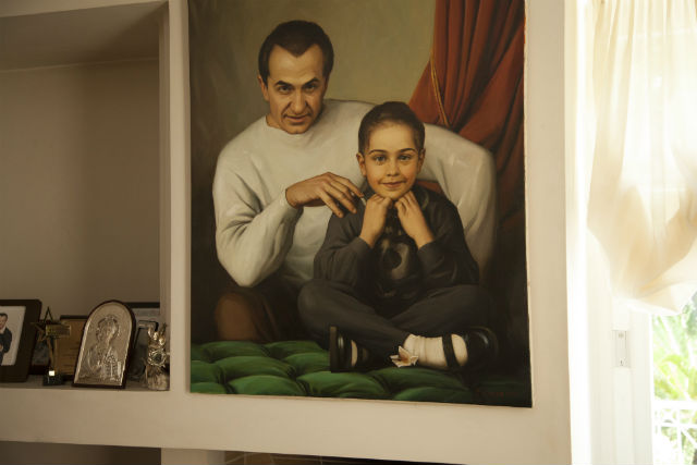 “Είναι έργο ενός Ρώσου καλλιτέχνη. Η Κωνσταντίνα ήταν 12 χρόνων και επειδή δεν καθόταν φρόνιμα να μας ζωγραφίσουν, δώσαμε μια φωτογραφία” που υπάρχει πάνω στο πιάνο του σπιτιού. “Η κόρη μου ξεκάθαρα είναι ένα από τα πιο σημαντικά πράγματα που μου συνέβησαν στη ζωή. Από κάτω, βλέπεις το δώρο της . Ήταν 11 όταν ζωγράφισε την καρδούλα που έχει φτερά και θέλει να πετάξει. Μια ψυχή, όχι γαλήνια από ό,τι βλέπεις. Έχει μια αντάρα. Οι ανησυχίες της. Δεξιά και αριστερά έχει δυο μάτια. Το ένα έχει πάνω ήλιο και καρδιά μέσα. Το έργο της δείχνει ότι από τότε της άρεσε να ταξιδεύει και πως ήταν ένα ελεύθερο πλάσμα. Δεν θέλει δεσμά. Αγαπά και τη μάνα και τον πατέρα. Η αγάπη είναι αριστερά πάνω και το κύμα είναι η ψυχή της”.