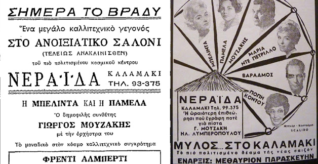 Η «Νεράιδα» βρισκόταν στην παραλιακή, ακριβώς απέναντι από το Συμμαχικό Στρατιωτικό Νεκροταφείο. Από τα μέσα του 1960 η «Νεράιδα» γίνεται ένα μαγαζί σύμβολο της νυχτερινής διασκέδασης. Μοντέρνα διακόσμηση, μεγάλοι χώροι, πρωτόγνωρη πίστα και καλή ακουστική. Στις αρχές της δεκαετίας του 1970 η «Νεράιδα» φιλοξενεί τον Γιάννη Πάριο για τις πρώτες του εμφανίσεις. Το μαγαζί γνώρισε τις μεγάλες του δόξες στα μέσα της δεκαετίας του 1970 και συγκεκριμένα όταν φιλοξένησε το πρόγραμμα με τους Βίκυ Μοσχολιού και Γιώργο Κατσαρό. Τότε ήταν που ήθελες κράτηση και για μια απλή καθημερινή ημέρα.