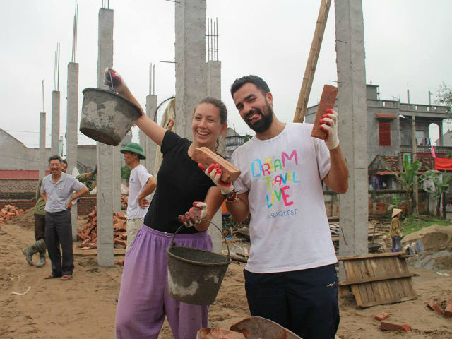 Ο βασικός σκοπός, βέβαια, ήταν και πάλι η προσφορά σε τοπικές κοινότητες που έχουν ανάγκη. Οι δυο νέοι, μάζεψαν χρήματα από διαδικτυακές καμπάνιες και κατάφεραν να χτίσουν ένα θερμοκήπιο στις σεισμόπληκτες περιοχές του Νεπάλ, αλλά και σχολικές αίθουσες σε Καμπότζη και Βιετνάμ. «Μάλιστα, στο Βιετνάμ, κάναμε ανοιχτό κάλεσμα μέσω facebook και ανταποκρίθηκαν 13 φίλοι από την Ελλάδα. Βρέθηκαν μαζί μας σε ένα χωριό στο βόρειο Βιετνάμ και χτίσαμε όλοι μαζί τη σχολική αίθουσα. Μοναδική εμπειρία»!