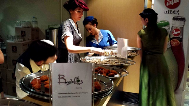 Το προσωπικό του Catering ντύθηκε από την ενδυματολόγο Γωγώ Κώνστα και το Βεστιάριο που διατηρεί στο κέντρο της Αθήνας και χτενίστηκε από το κομμωτήριο που διατηρώ στην πλατεία της Ν.Σμύρνης. Ήταν αυθεντική εμφάνιση από την περίοδο της κατοχής στην Ελλάδα του ’30.