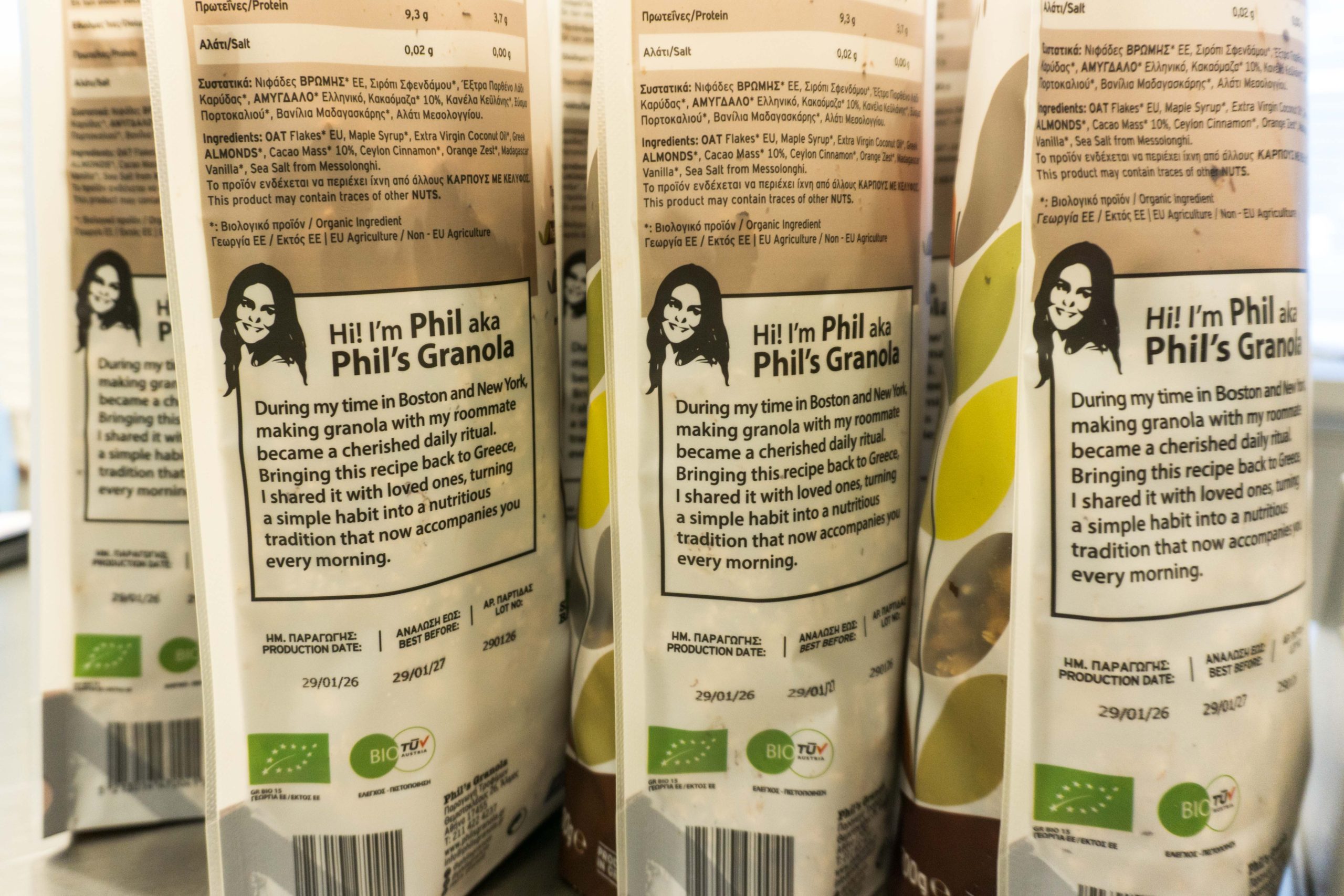 Στον Άλιμο, η Phil’s Granola της Φιλίππας Νάκα παράγει εδώ και πέντε χρόνια χειροποίητη, premium γκρανόλα με βιολογικά υλικά και συνταγές που θυμίζουν σπίτι. Μια ιστορία που ξεκίνησε στην Αμερική και ωρίμασε στην Αθήνα.