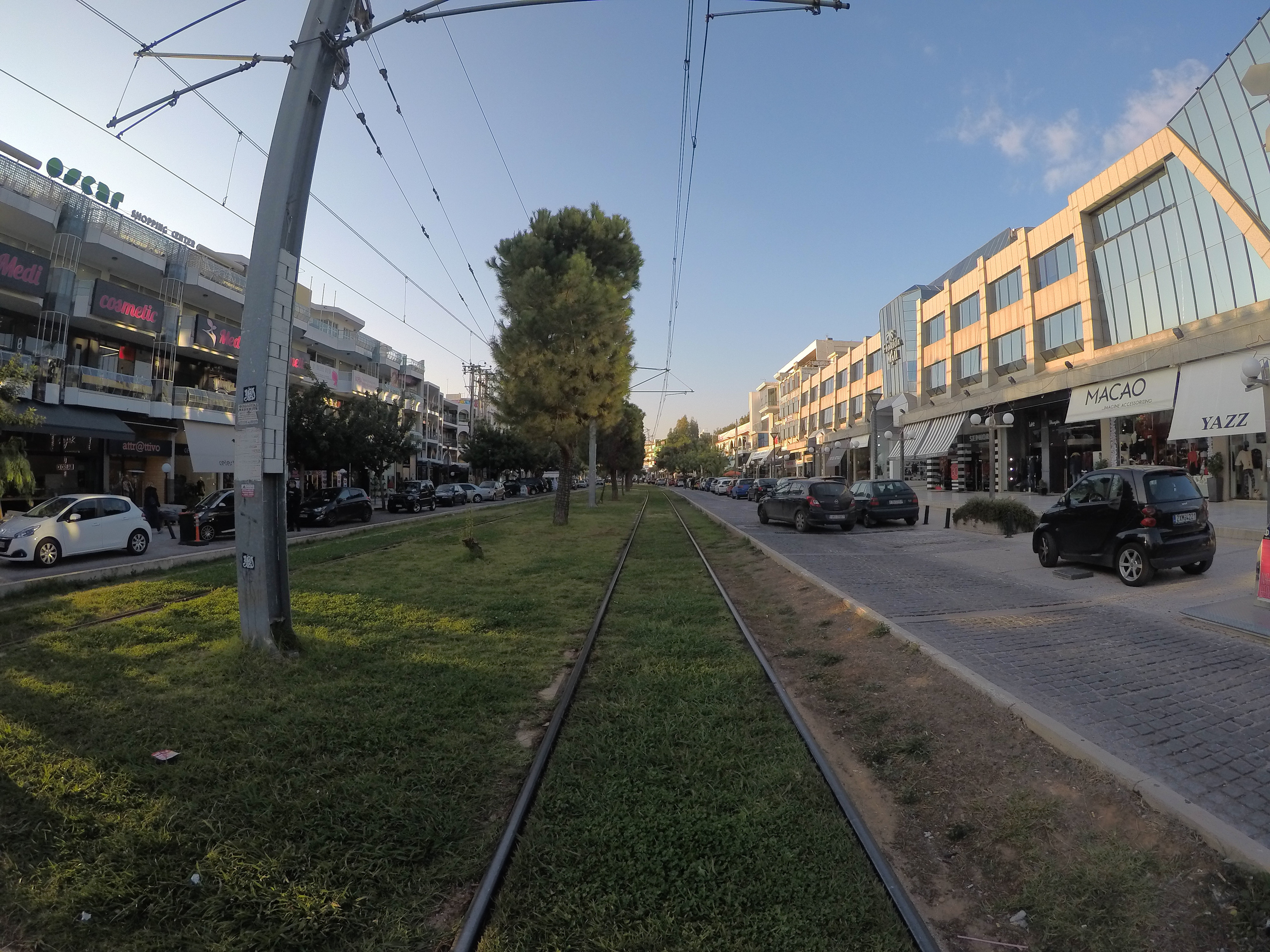 Στη Γλυφάδα κάποιοι αναγνωρίζουν τι κρατάμε στα χέρια μας και προσπαθούν να καταλαβαίνουν τι ακριβώς θέλουμε να βγάλουμε. Είναι μεσημέρι, η Μεταξά έχει πολύ κόσμο και ήρθε η ώρα να δοκιμάσουμε λίγο και το video, κατά πολλούς το δυνατότερο σημείο της κάμερας. Το τραμ έρχεται στην ώρα του και o fish eye, 180 μοιρών φακός, δύσκολα χάνει πληροφορία.