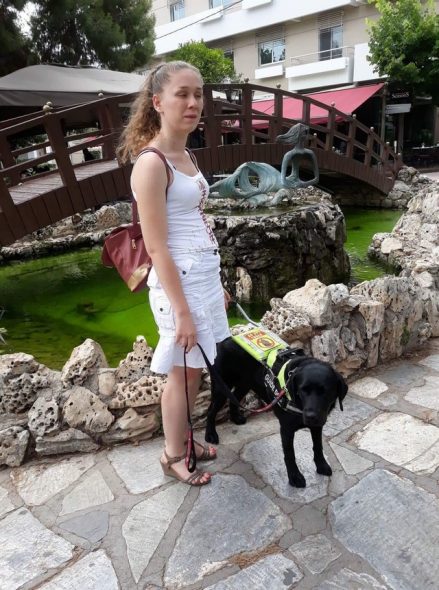 “Αυτές τις μέρες είναι στην Αλβανία και ξαναφεύγει για Αμβέρσα. Επιστρέφει την Δευτέρα και περιμένει τηλέφωνό σας”, με ενημερώνει η κυρία Ζωή Γερουλάνου, Πρόεδρος του Κέντρου Σκύλων Οδηγών Ελλάδας που ασχολείται εδώ και 37 χρόνια με το κομμάτι της αναπηρίας εθελοντικά. Η Τζουλιάννα Μπούσι, το ταξιδιάρικο κορίτσι που έψαχνα να μιλήσω, έχει το δικό της Σκύλο Οδηγό. Μαζί του, ή μάλλον, μαζί της περνά όλο το 24ωρο, “εκτός απροόπτου”, όπως μαθαίνω τη μέρα που (επιτέλους) την γνωρίζω.