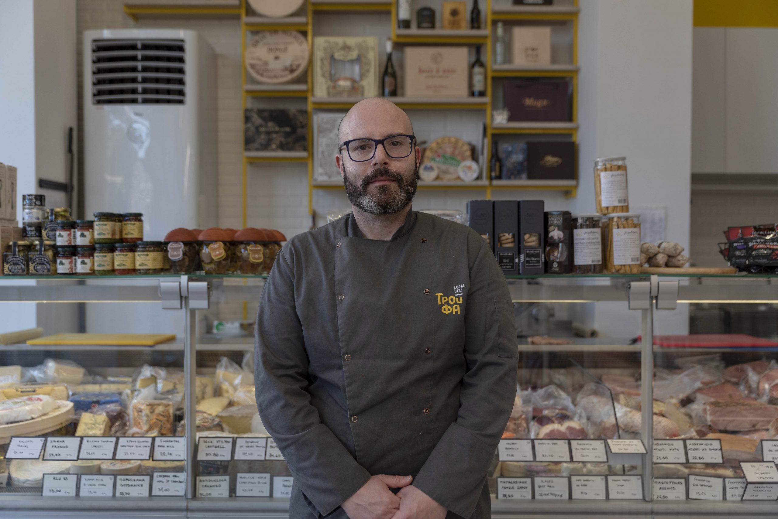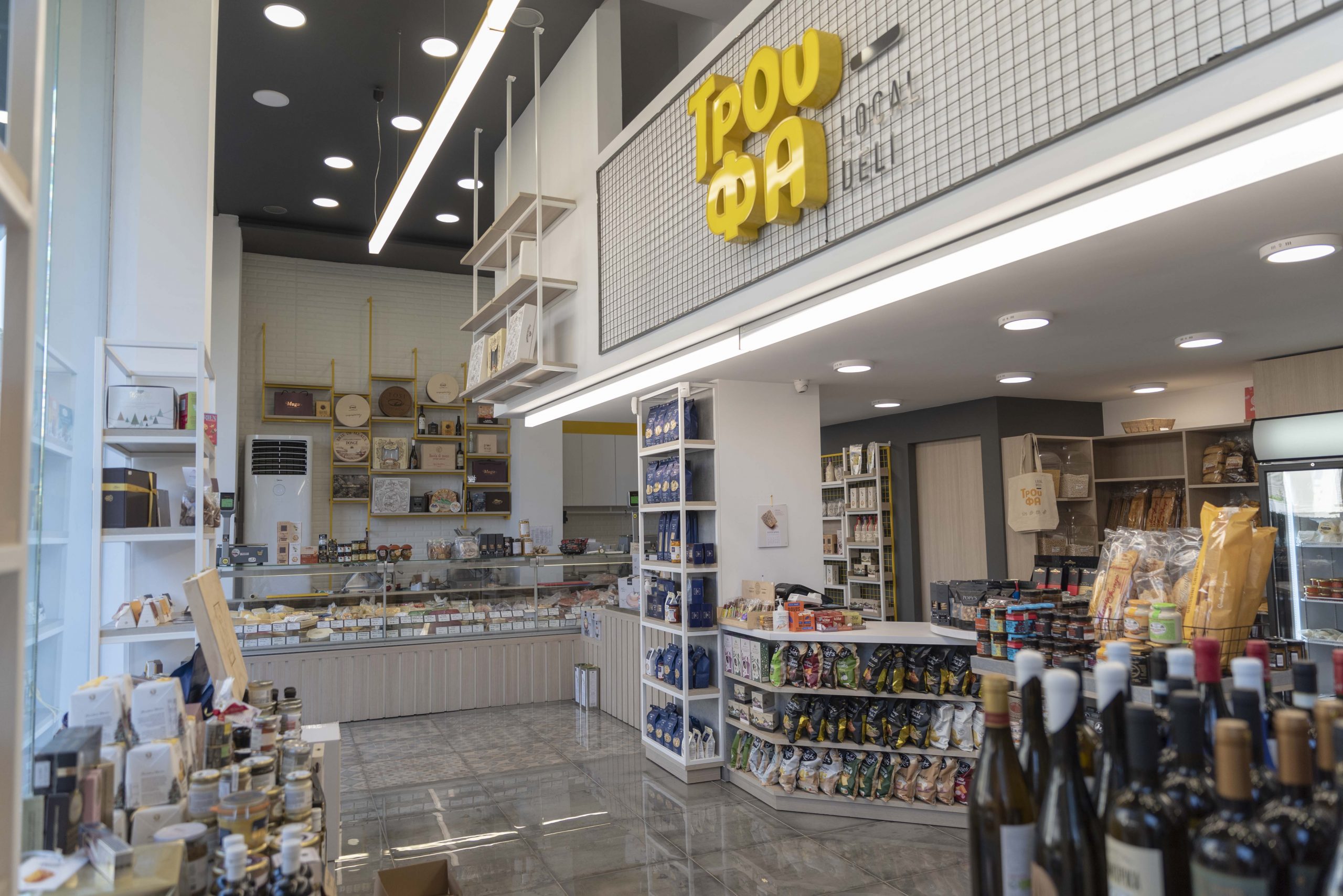 Ο δρόμος ανοίγει λίγο πιο πάνω και εκεί συναντήσαμε μια από τις νεότερες αφίξεις της γειτονιάς. Το deli Troufa. Άνοιξε μόλις τον Νοέμβριο του 2020, στη δύσκολη εποχή των lockdowns, έχει όμως ήδη αγαπηθεί από τους απαιτητικούς Φαληριώτες. Ο Μπάμπης, ο δημιουργός του, βρίσκεται στον χώρο των delicatessen από το 2007. «Δούλεψα σε μεγάλα delicatessen, μέχρι που πήραμε την απόφαση με τη γυναίκα μου να ανοίξουμε το δικό μας μαγαζί στο Παλαιό Φάληρο. Προσφέρουμε αλλαντικά, τυριά, όσπρια, ζυμαρικά, κρασιά. Φέρνουμε τυριά από μικρούς παραγωγούς από την Ελλάδα αλλά και το εξωτερικό και κυρίως τυριά που έχουν βραβευτεί στα World Cheese Awards. Ψάχνω και στα υπόλοιπα προϊόντα ετικέτες που έχουν βραβευτεί στα Great Taste Awards και γενικά προσπαθώ να προσφέρω στους πελάτες μου ό,τι καλύτερο μπορώ. Αλλά οι κάτοικοι της περιοχής είναι ήδη μαθημένοι να αναζητούν τις καλές και ποιοτικές γεύσεις».