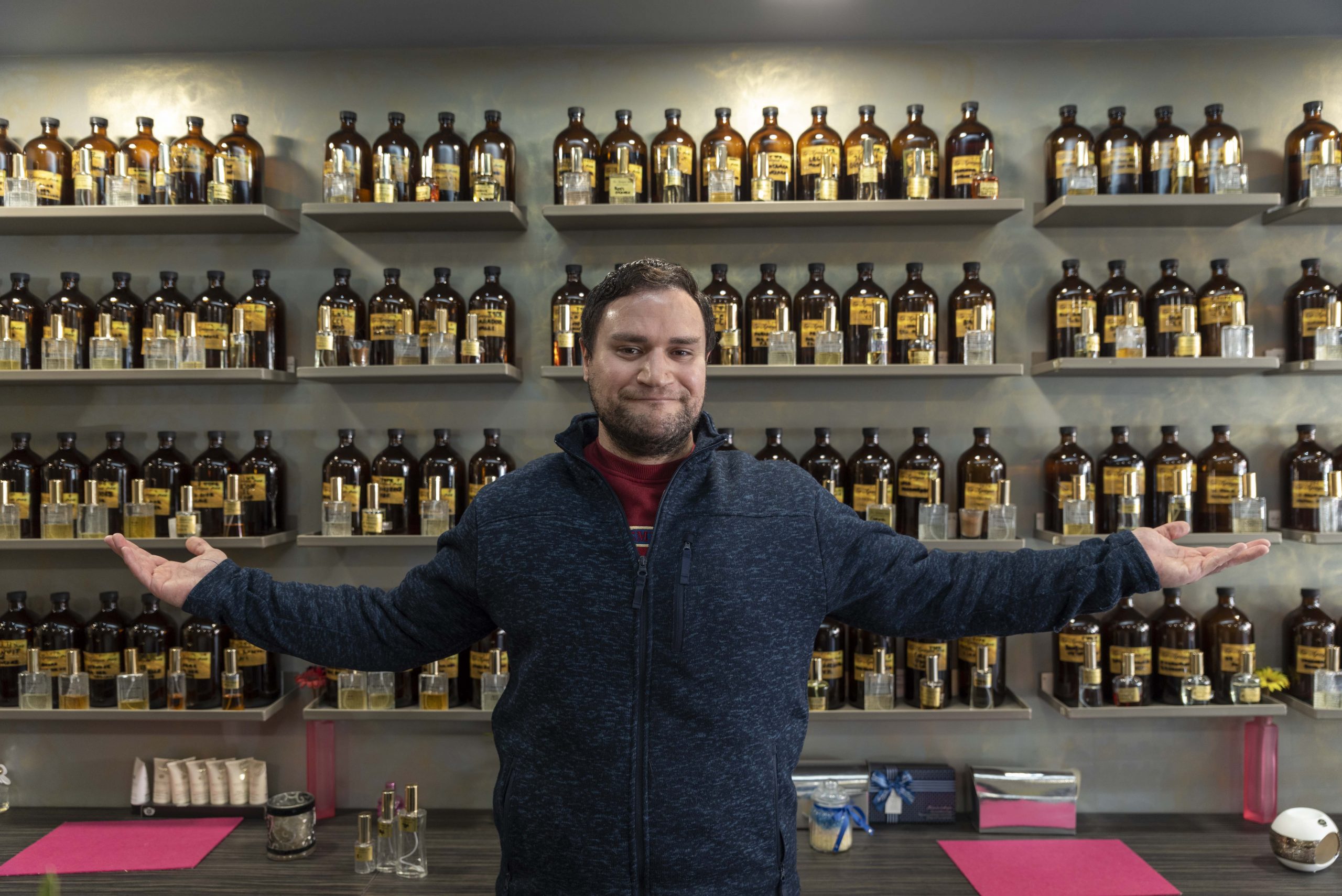 Σειρά είχε το μαγαζί με τα αρώματα στο ισόγειο μιας πολυκατοικίας, ακριβώς απέναντι από την εκκλησία. Εκεί συναντήσαμε τον Μάριο, ο οποίος γεννήθηκε και μεγάλωσε στην Παναγίτσα. «Μένω εδώ από τότε που γεννήθηκα. Η μητέρα μου ήταν από τη Σμύρνη. Ήρθαν οικογενειακώς και εγκαταστάθηκαν εδώ. Παλιά, η γειτονιά ήταν αρκετά διαφορετική. Δεν υπήρχε το τραμ, περνούσε το λεωφορείο και κόλλαγε γιατί είχαν παρκάρει παντού τα αμάξια. Και πολυκατοικίες δεν είχε πολλές. Θυμάμαι που παίζαμε μπάλα στα οικόπεδα. Είναι όμως ακόμα μια ήσυχη γειτονιά, με χαμηλή εγκληματικότητα και για αυτό ξεχωρίζει».