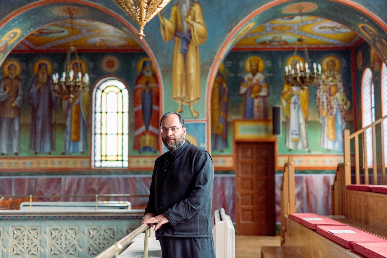 Ο πατέρας Ιωσήφ Ταγαράκης μας βοήθησε να πλησιάσουμε στα άδυτα αλλά και στο φως μιας από τις πιο ιστορικές -και ταυτοχρόνως σύγχρονες- εκκλησίες των νοτίων προαστίων.