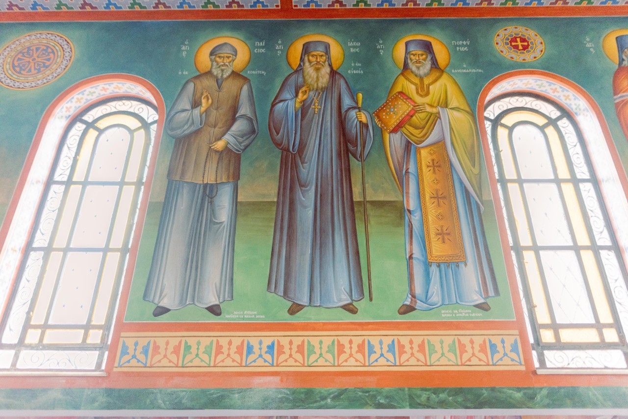 Το πιο πρόσφατο έργο στην εκκλησία «που πραγματοποιήθηκε με την ευλογία και την πρόνοια του σεβασμιώτατου Μητροπολίτη μας κ. Συμεών, είναι το υπερώο και οι αγιογραφίες σε αυτό, οι οποίες είναι πολύ πρόσφατες», όπως μου εξήγησε ο πατέρας Ιωσήφ. «Το ιδιαίτερο είναι ότι ήρθαν ως συνέχεια, από τα ίδια χέρια των ανθρώπων που ξεκίνησαν την αγιογραφία του ναού πριν από 30 χρόνια. Tρεις αγιογράφοι που ολοκλήρωσαν αυτό το έργο ήταν τότε μαθητευόμενοι του Καρούσου, ο οποίος ήταν ο πρώτος αγιογράφος-ζωγράφος που είχε βάλει το χέρι του εδώ».