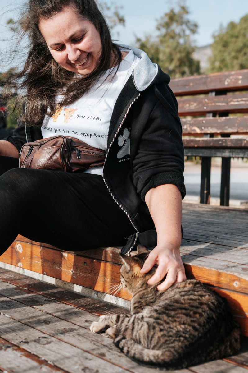 «Είναι διαφορετικό να ασχολείσαι με ένα γατί που έχεις μέσα στο σπίτι και διαφορετικό να ασχολείσαι με τα αδέσποτα εκεί έξω σε έναν τόπο που δεν τα αποδέχεται. Ξεκίνησα με το κλασικό: Πού υπάρχουν γάτες; Να τις πιάσουμε, να τις στειρώσουμε για να μην υπάρχει αυτός ο συνεχής πολλαπλασιασμός. Αυτό που δεν μπορώ να αντέξω είναι τα πατημένα γατάκια στον δρόμο. Τόσα χρόνια το βλέπω μπροστά μου και δεν θα το συνηθίσω ποτέ. Κάθε φορά είναι σαν να δέχομαι μια γροθιά στο στομάχι. Γιατί δεν είναι μόνο ότι τα πατάνε, αλλά ότι τα παρατάνε».
