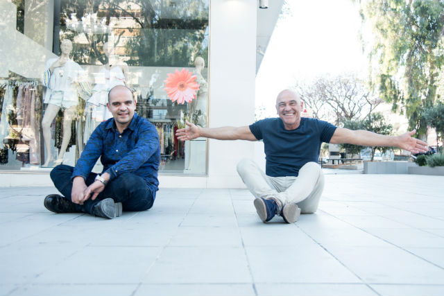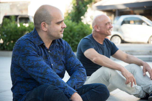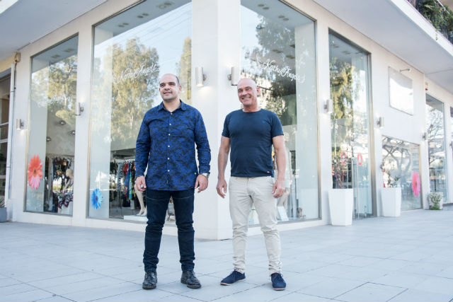 Ο Θανάσης και ο Δημήτρης μπροστά από το μαγαζί που στεγαζόταν το Corretto
