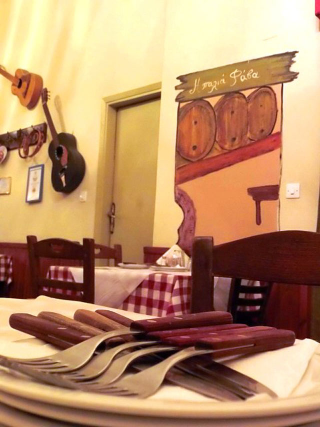 Μάθαμε και την ιστορία του μαγαζιού. Που ήταν βαρελάδικο το 1960, όταν ακόμη η Αμφιθέας είχε στο πλάι χώματα και τα σπίτια τριγύρω ήταν χαμηλά. Που μετά, αφού άρχισαν να βγάζουν κρασί και μεζέδες στους πελάτες, έγινε ταβέρνα με το όνομα «Η Φάβα» με ιδιοκτήτες τον Σολωμό και την Ελευθερία Γαβαλά (όπως γράφει και η ταμπέλα που ακόμη μπορείς να δεις, σηκώνοντας λίγο το κεφάλι σου με το που μπαίνεις από την αυλή στον μέσα χώρο). Που εδώ έρχονταν ο Κατράκης και ο Ζερβός, που με το που υψώθηκαν γύρω της τα ψηλά κτίρια, άρχισε να κρύβεται και να πέφτει η δουλειά. Όμως το μεράκι της πιο γλυκιάς μαγείρισσας των νοτίων προαστίων αναπτέρωσε το μαγαζί και το γέμισε ζωντάνια και ακόμη πιο ωραίες μυρωδιές.