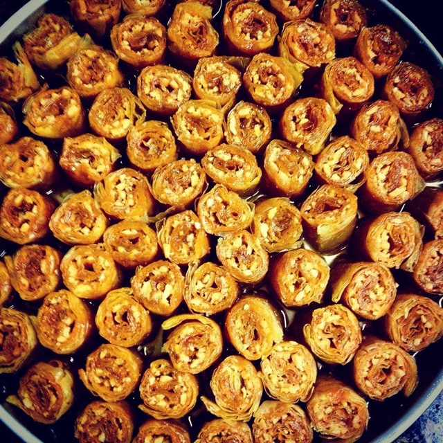Όση ώρα μιλάμε το βλέμμα μου κινείται αριστερά και δεξιά, στις γεμάτες με γλυκά βιτρίνες. Θα πας να πάρεις μισό κιλό ψωμί και σίγουρα θα φύγεις με γεμάτες σακούλες. Δε γίνεται να αντισταθείς. Η κουβέντα συνεχίζεται όπως και οι δοκιμές μου.