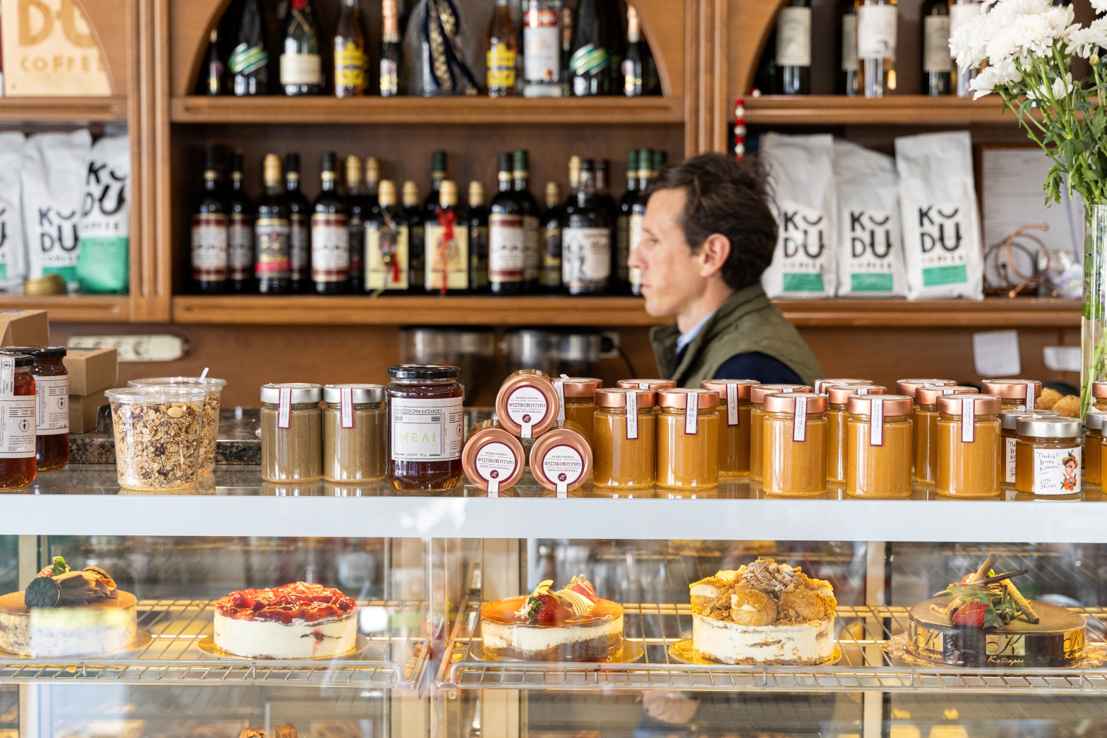 Αεικίνητος, χαιρετάει, εξυπηρετεί, χαμογελάει, κερνάει τους πάντες – εμένα με έχει ήδη κεράσει ένα κρουασάν με αμυγδαλόπαστα, μία μπάρα με ξηρούς καρπούς και κινόα, τον καφέ μου κι ένα κριτσίνι με φέτα και ανθότυρο.