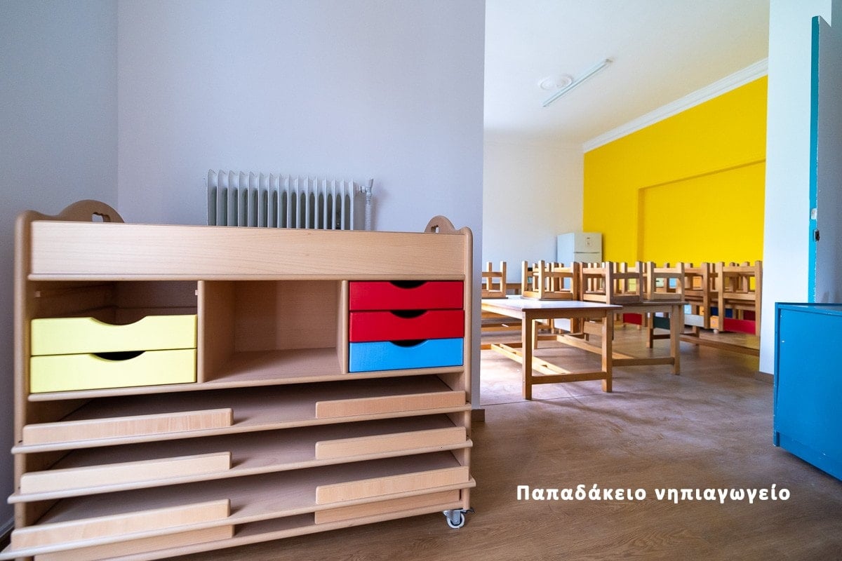 Η πρώτη σκέψη ήταν ένα μέρος του κτιρίου να γκρεμιστεί ώστε να μεγαλώσει ο χώρος. Ήταν η εύκολη λύση. Όμως ο Δήμος επέλεξε να σεβαστεί το παλιό όμορφο σπίτι και να μην αλλοιώσει την αρχική μορφή του. Έτσι, στις αρχές του καλοκαιριού ξεκίνησαν και μέσα σε λιγότερο από τρεις μήνες ολοκληρώθηκαν οι εργασίες ανακαίνισης και το πρώτο «κουδούνι» του σχολείου χτύπησε με την έναρξη της σχολικής χρονιάς, στις 13 Σεπτεμβρίου, βρίσκοντας μάλιστα τον Γιώργο Παπανικολάου στο Παπαδάκειο Νηπιαγωγείο, να υποδέχεται ο ίδιος τους μικρούς μαθητές.