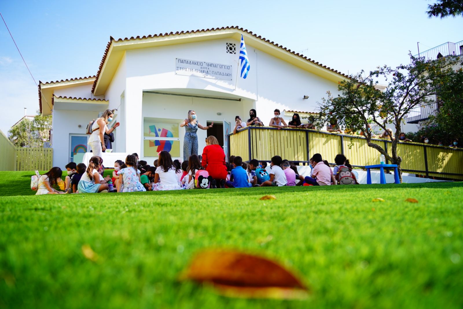Σε έναν παραμυθένιο χώρο για τα παιδιά της Γλυφάδας μεταμορφώθηκε το Παπαδάκειο Νηπιαγωγείο, μια βίλα της δεκαετίας του ‘60, στην Άνω Γλυφάδα. Το όμορφο αυτό σπίτι, με τη μεγάλη αυλή και τον κήπο με τις λεμονιές ήταν η κατοικία του Στρατή Παπαδάκη, δασκάλου στο 2ο Δημοτικό Σχολείο Γλυφάδας, (την γνωστή “παράγκα” της Καραχάλιου) και της γυναίκας του Ιωάννας.
