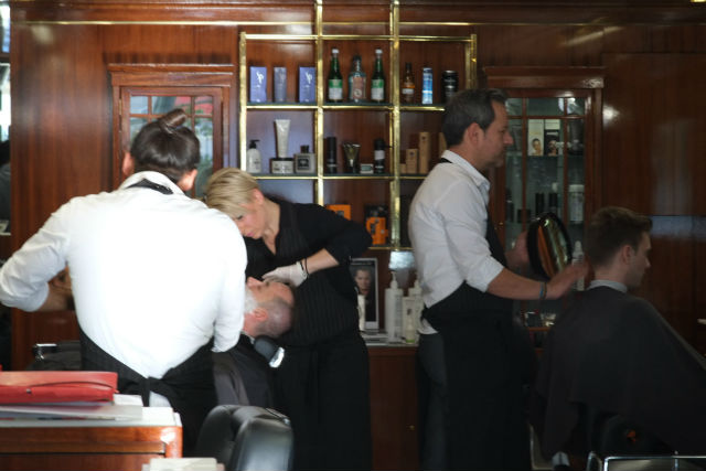 Η ιστορία δεν προχώρησε και στα 15 ασχολήθηκε με το Plan B: έπιασε δουλειά σε κουρείο. “Πασχαλίδης λεγότανε. Πήγαινα στην Ιπποκράτους, στη στάση Διδότου και μετά στο άλλο, στην Καλλιδρομίου. Είχε δυο κομμωτήρια και πήγαινα και στα δυο για να μάθω”. Όλη την ημέρα ήταν στο δρόμο. Αλλά του άρεσε. “Από τύχη ασχολήθηκα με αυτήν τη δουλειά. Μετά εμφανίστηκε μια θεία του γαμπρού μου, η Σούζι από την Κωνσταντινούπολη. Ήταν κοσμική. Γνώριζε τους πάντες. Με πήγε σε κομμωτήριο, στο Κολωνάκι. “Γιώργος και Ρένα” λεγότανε το κομμωτήριο, ήταν από τα καλύτερα της Αθήνας. Θυμάμαι ερχόταν εκεί για περμανάντ η βασίλισσα Φρειδερίκη. Αυτά τα μαθήματα μου στοίχισαν 10 χρυσές λύρες -τότε είχαμε τις λύρες, μιλάμε για το 1953”. Τα χρήματα ήταν δικά του. “Τα “έβγαλα” από τον Πασχαλίδη. Δεν πήρα τίποτα από τον πατέρα μου”.