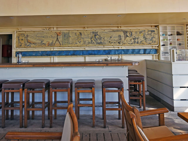 “Είναι του φίλου, του Ηλία Μακρή. Μου το έκανε δώρο το 1995. Έχει γίνει και αυτό μια ταυτότητα του μαγαζιού. Είναι κομμάτι από τη ζωή του και ταιριάζει με τη θάλασσα, με το στοιχείο του νερού. Υπάρχουν και πολλά άλλα επί μέρους αντικείμενα που έχουν γίνει ντεκόρ”.