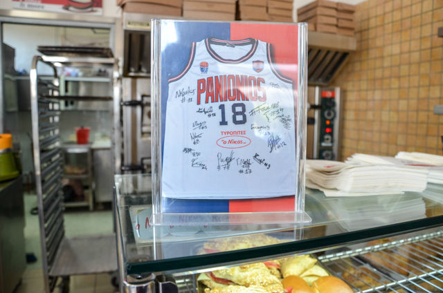 “Έχουν περάσει πάρα πολύ παίκτες και πολύ καλές ομάδες του Πανιωνίου. Με πολλούς έχω ιστορίες να θυμάμαι. Ας πούμε όλη την μπασκετική ομάδα όταν είχαμε για προπονητή τον Λευτέρη Σούμποτιτς. Τελειώνανε την προπόνηση και ερχόντουσαν όλοι στο μαγαζί. Ο Φάνης ήταν συνέχεια εδώ. Πάντα φαγανός ο άτιμος. Με κάνα 2-3 κρεατόπιτες χόρταινε. Πριν από περίπου 5-6 χρόνια του είχα στείλει στην Πάρο που ζει τώρα ένα ολόκληρο ταψί. Ζει στο νησί και ο αδερφός μου και ήξερα ότι πήγαινε και έπαιζε συχνά τάβλι με τον Φάνη. Τους έστειλα λοιπόν ένα ταψί για να μην παίζουν ξεροσφύρι.”