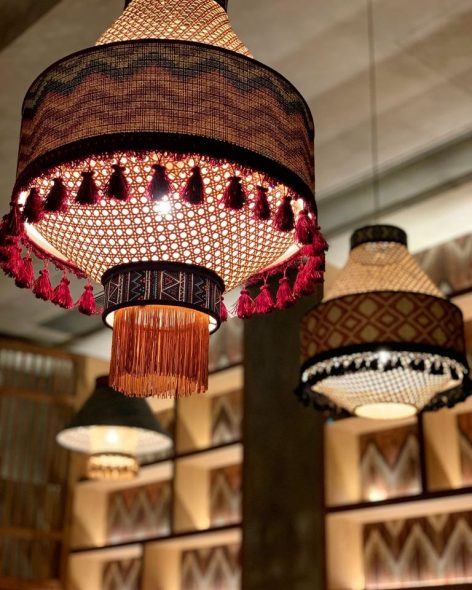 Πολύ σημαντικό ρόλο στους χώρους που επιμελείται παίζουν τα φωτιστικά, τα οποία σχεδιάζει και κατασκευάζει η ίδια.