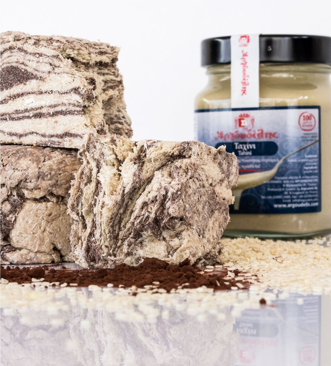 Στόχος παραμένει μέχρι σήμερα η διατήρηση της παράδοσης του ονόματος, που έκανε ξακουστό τον χειροποίητο χαλβά σε όλη την Ελλάδα, αλλά και η αδιαπραγμάτευτη ποιότητα στις πρώτες ύλες και τα προϊόντα που χρησιμοποιούνται. Για να καταλάβεις, η οικογένεια Αργουδέλη φτιάχνει το δικό της ταχίνι, με σουσάμι που έρχεται απευθείας από το χωράφι και το επεξεργάζονται στη βιοτεχνία τους με μια πολύ παραδοσιακή και φυσική διαδικασία. «Προμηθευόμαστε από Αφρική τις πιο εκλεκτές ποικιλίες σουσαμιού στον κόσμο κι έπειτα το καθαρίζουμε, το κοσκινίζουμε, το ψήνουμε και το αλέθουμε. Είναι μια διαδικασία που κρατά δεκαέξι ώρες, οπότε είναι πιο χρονοβόρα αλλά και κοστοβόρα από το να πάρεις έτοιμο, βιομηχανοποιημένο ταχίνι. Παρόλα αυτά μας αρέσει αυτή η διαδικασία γιατί βγαίνει ένα ταχίνι το οποίο είναι εύγευστο και τρώγεται ακόμα και σκέτο στο πρωινό μας, χωρίς κάποιο γλυκαντικό. Επίσης, δεν πικρίζει και βγάζει έναν χαλβά πολύ λευκό. Θεωρούμε πολύ σημαντικό το γεγονός ότι μπορούμε να ελέγχουμε την παραγωγή του από την αρχή μέχρι το τέλος, καθώς έτσι, μπορούμε να εγγυηθούμε για την ποιότητά του», μου αναφέρει η Ευφροσύνη. Η βιοτεχνία παράγει ταχίνι κλασσικό (από 100% αποφλοιωμένο σουσάμι), ταχίνι Ολικής άλεσης (από 100% σουσάμι αναποφλοίωτο), καθώς και gourmet αλείμματα ταχινιών με ξηρούς καρπούς και μέλι, τη σειρά «Ταχίνι twist”.