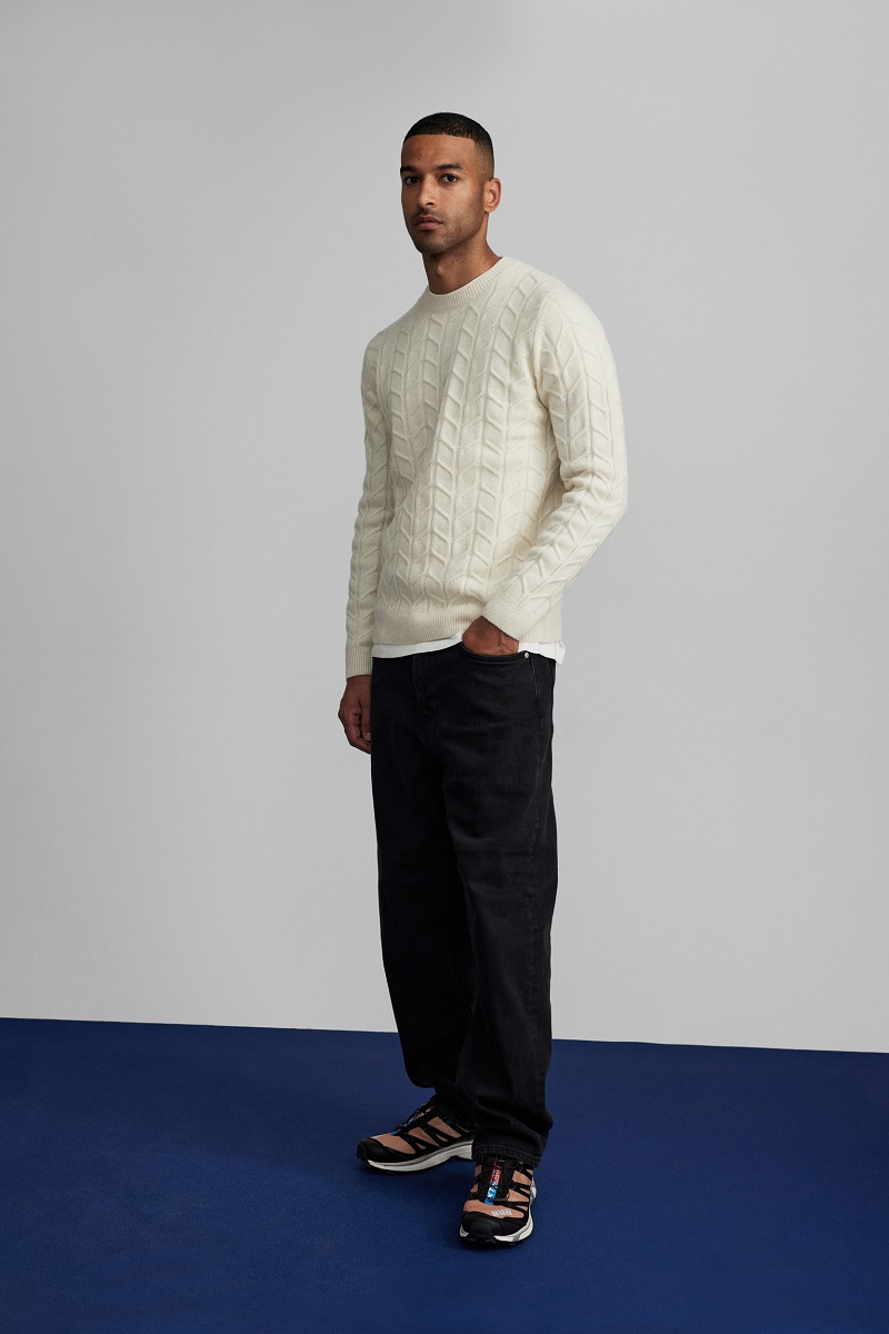 Bertram O-Neck, Color Snow White / Zem K1577, Color Black Denim