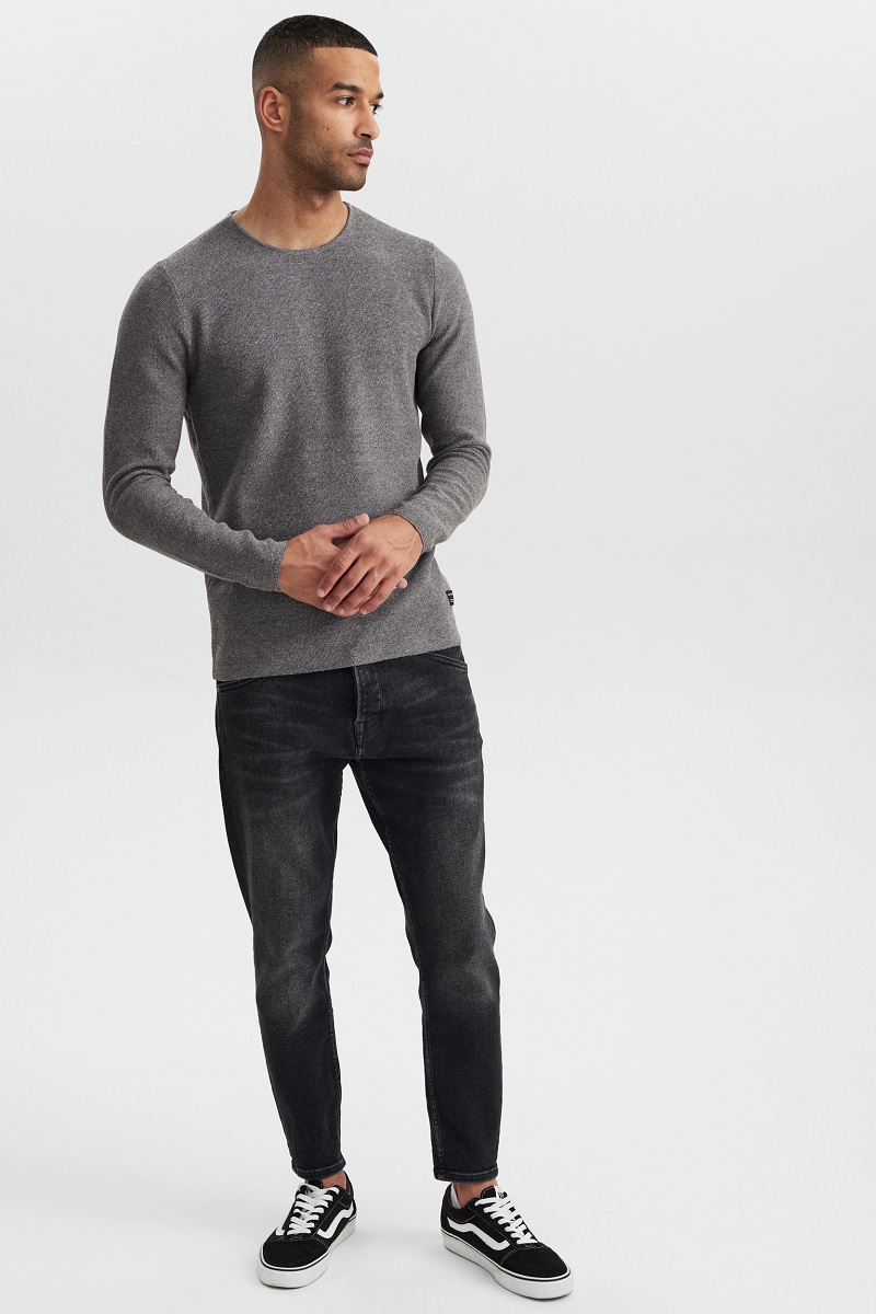 Tomas O-Neck Knit, Color Grey Melange / Alex K3825, Color Black Denim