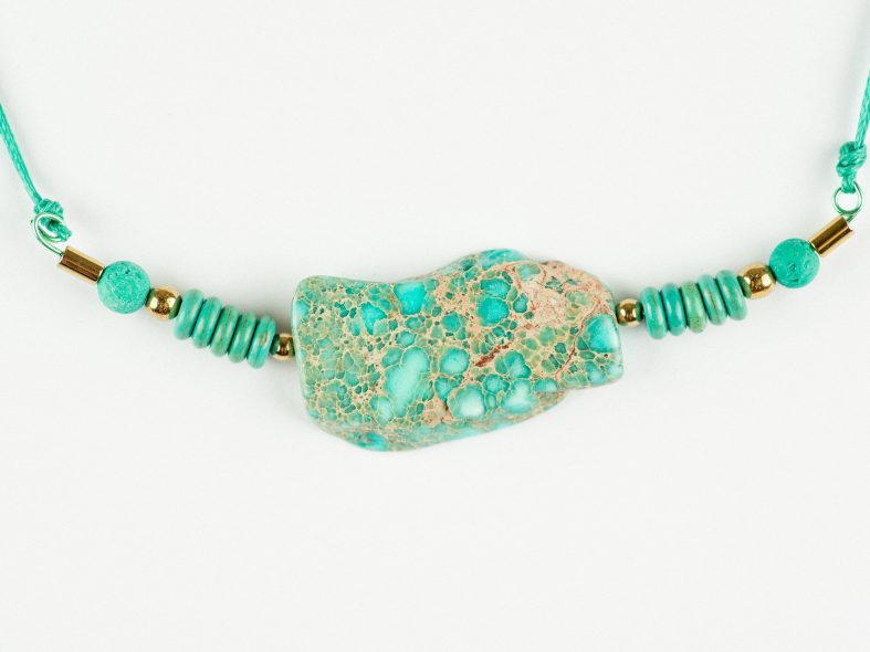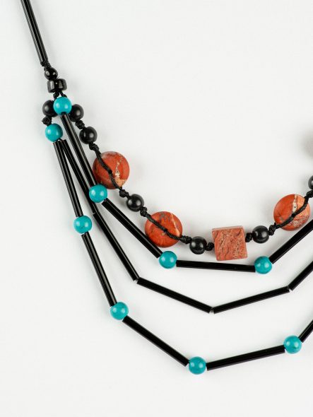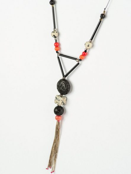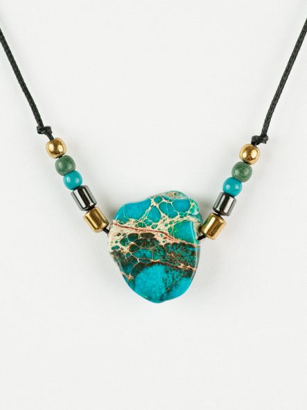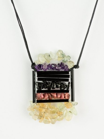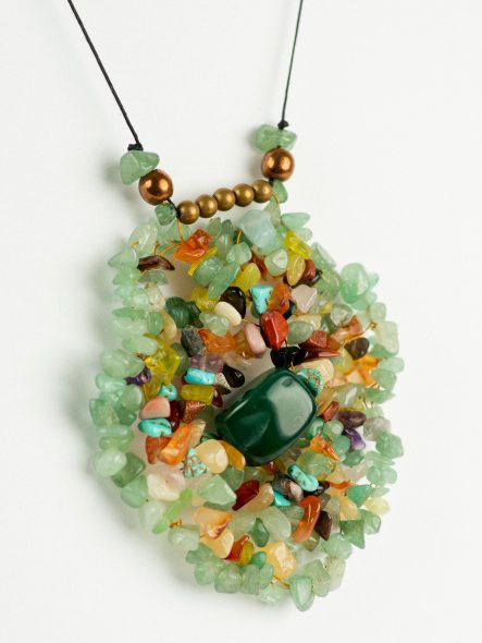 Συνονθύλευμα ημιπολύτιμων λίθων σχηματίζουν αυτό το κρεμαστό κολιέ.