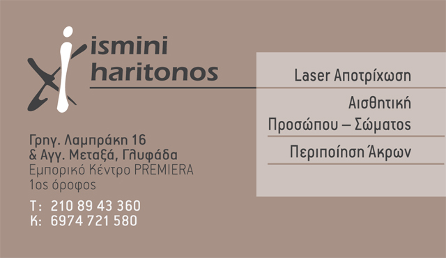 Ένα εντυπωσιακό μακιγιάζ και μια κομψή εμφάνιση σίγουρα συμβάλλουν στο να αισθανόμαστε όμορφες. Ειδικά, τις γιορτινές μέρες που διανύουμε, ακόμα πιο σημαντικό ρόλο παίζει η λάμψη και η υγεία τόσο του προσώπου όσο και του σώματός μας. Για όλες εσάς που επιθυμείτε μια συνολική περιποίηση προσώπου και σώματος, με στόχο μόνο το τέλειο αποτέλεσμα, η λύση βρίσκεται στην καρδιά της Γλυφάδας. Ο πολυχώρος ομορφιάς ΙΣΜΗΝΗ ΧΑΡΙΤΩΝΟΣ κάνει ακόμα και τον πιο απαιτητικό επισκέπτη πιστό φίλο. Μια επίσκεψη αρκεί για να σας πείσει.