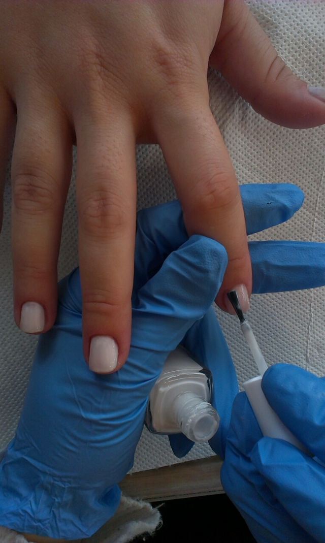 1. Περνάμε ένα ημίλευκο βερνίκι τα νύχια μας.