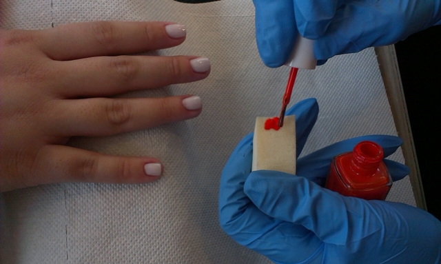 3. Τοποθετούμε πάνω στο σφουγγαράκι λίγη ποσότητα από το βερνίκι μας.