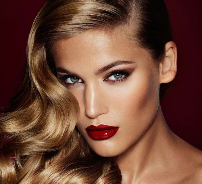 Συνήθως για το κλασσικό look με κόκκινο κραγιόν και eyeliner, χρησιμοποιούμε ματ κόκκινο κραγιόν και eyeliner χωρίς σκιά. Για το συγκεκριμένο look όμως, βάζουμε ματ καφετί σκιά στο ‘καπάκι’ του ματιού και δημιουργούμε μια γωνία για να φαίνονται τα μάτια μας πιο σέξυ και γατίσια. Βάζουμε eyeliner ή μαύρο μολύβι, ρίζα-ρίζα στις βλεφαρίδες αλλά δεν τραβάμε την γραμμή πέρα απ’ το τελείωμα του ματιού. Χρησιμοποιούμε μάσκαρα που δίνει όγκο στις βλεφαρίδες και στα χείλη βάζουμε με προσοχή κόκκινο κραγιόν και περνάμε από πάνω διαφανές lip gloss που τα κάνει να φαίνονται πιο σαρκώδη. Τέλος, περνάμε με ένα bronzer τους κροτάφους για να ‘ζεστάνουμε’ το πρόσωπο και κάνουμε τα γνωστά κοψίματα στα ζυγωματικά.