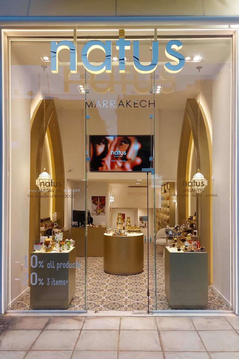 Τα καινοτόμα προϊόντα της Natus Marrakech συνδυάζουν τεχνολογία και επιστημονικές ανακαλύψεις με γνώση και τελετουργίες ομορφιάς που βασίζονται σε φυσικά συστατικά όπως λάδι Argan, φραγκόσυκο, γάλα καμήλας, μέλι, γλυκά αμύγδαλα, βούτυρο καριτέ, ghassoul και άλλα τα οποία μπορεί πλέον κανείς να εξερευνήσει απο κοντά, για να φροντίσει το σώμα, το πρόσωπο και τα μαλλιά του.