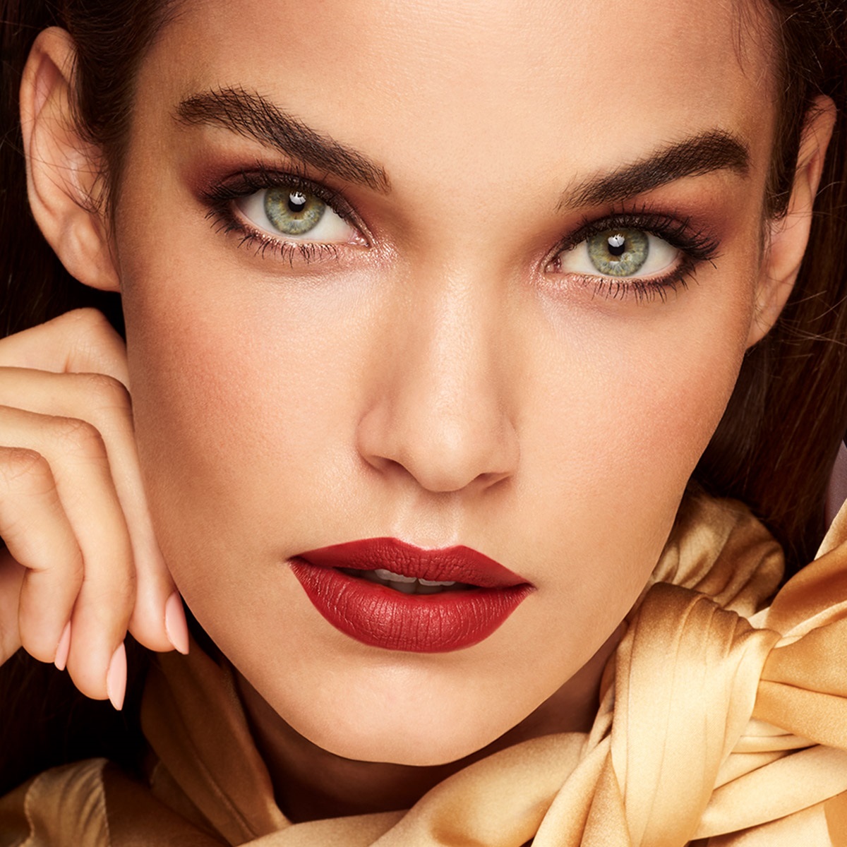 Για ακαταμάχητα μάτια δημιούργησε ένα απαλό αλλά αισθησιακό μακιγιάζ σε nude αποχρώσεις, από ανοιχτό καραμελέ μέχρι το πιο βαθύ, σκούρο σοκολατί. Ξεκίνησε αναμειγνύοντας τις αποχρώσεις της Guilty Pleasure Eyeshadow Palette σε όλο το βλέφαρό και προς τα πάνω μέχρι το κόκκαλο του φρυδιού, αφήνοντας μια εκλεπτυσμένη υφή που θυμίζει πραλίνα. Μην διστάσεις να παίξεις με τις διαφορετικές υφές των αποχρώσεων επιλέγοντας ματ ή μεταλλικές ή ακόμα και τα δύο. Στη συνέχεια, ενίσχυσε το χρωματικό αποτέλεσμα με την Delightful Eyeshadow, μια σκιά σε μονή συσκευασία που περιέχει εκχύλισμα κακάο και αναμειγνύεται όμορφα χαρίζοντας απαλή λάμψη στα μάτια. Εφάρμοσε τη στο καπάκι των βλεφάρων με το δάχτυλο για να προσθέσεις επιπλέον λάμψη. Δημιούργησε έπειτα, ένα smokey look χρησιμοποιώντας το Eyeliner Duo με διπλή μύτη σε μια παρόμοια απόχρωση και χρησιμοποίησε το άκρο του μαρκαδόρου για να καθορίσεις το σχήμα του ματιού, ακολουθώντας την επάνω γραμμή των βλεφαρίδων και, στη συνέχεια, χρησιμοποίησε το άκρο kajal για να αναμίξεις και να δημιουργήσεις ένα πιο δραματικό, εντυπωσιακό αποτέλεσμα. Συνδύασε μάσκαρα από το All In One Mascara και Eyeliner για έντονο όγκο και διαχωρισμό των βλεφαρίδων με ένα πέρασμα του eyeliner από την εσωτερική άκρη του ματιού έως την εξωτερική για πιο γατίσιο βλέμμα.