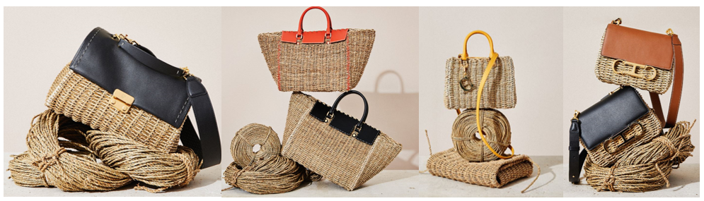 Με αυτήν την ιδέα κατά νου η συλλογή Seagrass γεννήθηκε, με βάση τη διαδικασία στην οποία οι τσάντες κατασκευάζονται με τα χέρια χρησιμοποιώντας πλεκτά φύκια. Τα εξειδικευμένα χέρια υφαίνουν τα στελέχη αυτού του θαλάσσιου φυτού για να δημιουργήσουν το σώμα των τσαντών πριν τα συνδυάσουν με το αποκλειστικό δέρμα Baobab του οίκου Carolina Herrera.
