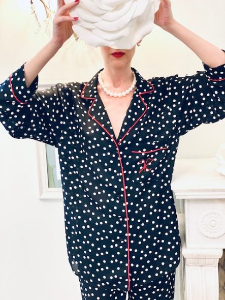 Παίζοντας με τα αγαπημένα του μοτίβα σε πουά εμπριμέ και καρώ vichy, τα συνδυάζει με τόλμη μεταξύ τους δημιουργώντας για μια ακόμη φορά μια συλλογή, από 100% μετάξι, που τη χαρακτηρίζει η διαχρονική κομψότητα και η θηλυκότητα.
