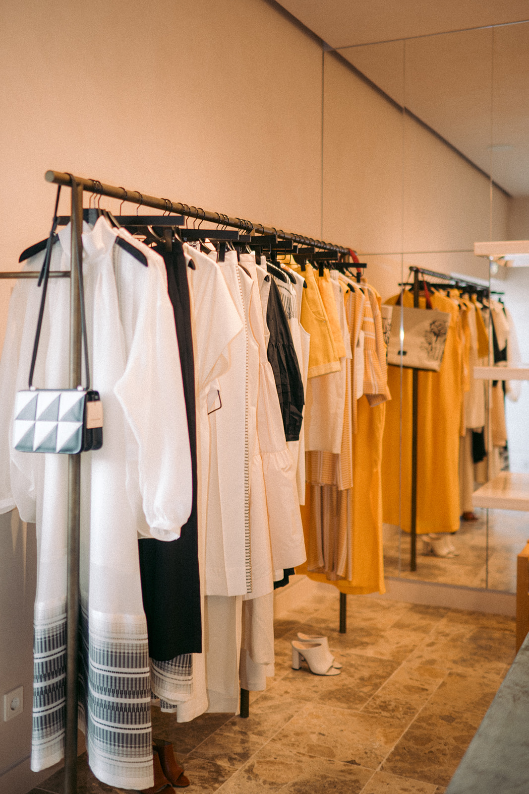 Πλήρως εναρμονισμένος με το φυσικό τοπίο της περιοχής, ο σχεδιασμός του χώρου της νέας Zeus+Δione boutique φέρει την υπογραφή της αρχιτέκτονος Νεφέλης Παπακυριακοπούλου και βασίζεται στην ισορροπία μεταξύ Δωρικών γραμμών, φυσικών τοπικών υλικών και αναφορών στη χειροτεχνία. Στο εσωτερικό κυριαρχούν το πράσινο μάρμαρο “Oasis” από την Τήνο και το λευκό “Aegean” από τον Βόλο, υλικά που επιλέχθηκαν για τη λεία υφή, τη γήινη πολυτελή αίσθηση και τον διαχρονικό χαρακτήρα τους. Η boutique φιλοξενεί τις πιο πρόσφατες ready-to-wear συλλογές της Zeus+Δione, καθώς και αξεσουάρ, κοσμήματα, γυαλιά ηλίου, υποδήματα και αντικείμενα της homeware σειράς.