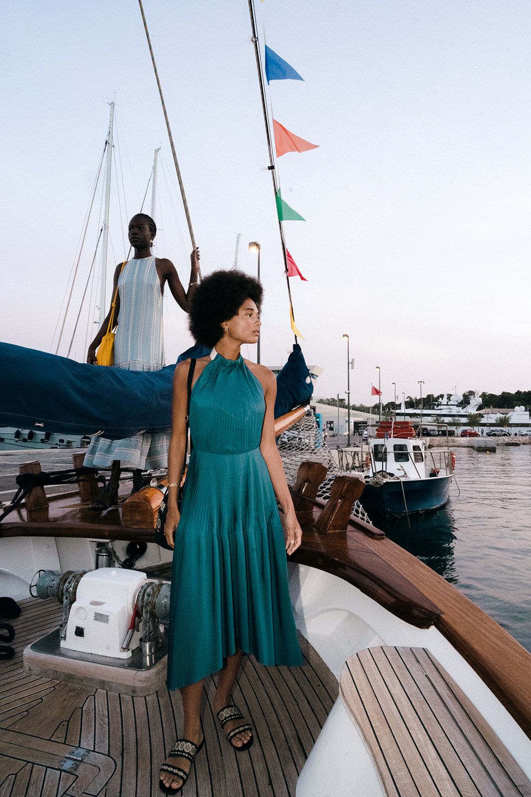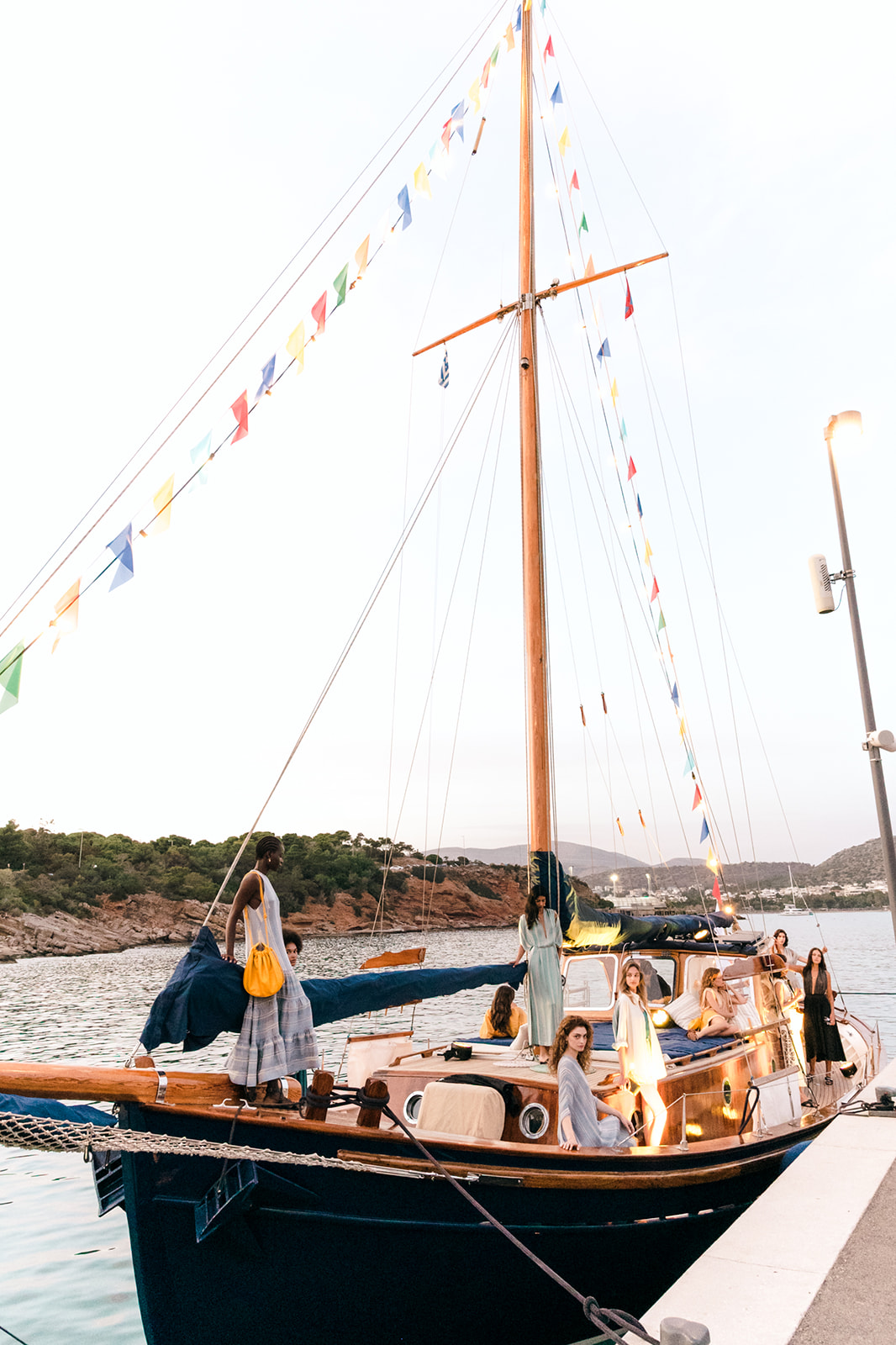 Μια βραδιά με καλοκαιρινή αύρα, η Zeus+Δione συνέθεσε ένα σκηνικό εγκαινίων βγαλμένο από ελληνικό νησιώτικο όνειρο: υπό διαχρονικές μελωδίες, και την καλλιτεχνική επιμελεία του Marios Schwab ένα φωτισμένο καΐκι έδεσε στην προβλήτα της Astir Marina, με μοντέλα να κινούνται μέσα σε ρούχα που καθρεφτίζουν τα χρώματα της Μεσογείου, και μία συλλογή που αντλεί έμπνευση από το «Πούσι» του Νίκου Καββαδία, μια ποιητική ωδή στον κόσμο των ναυτικών, του εμπορίου, της θάλασσας και των μυστηρίων που την περιβάλλουν.