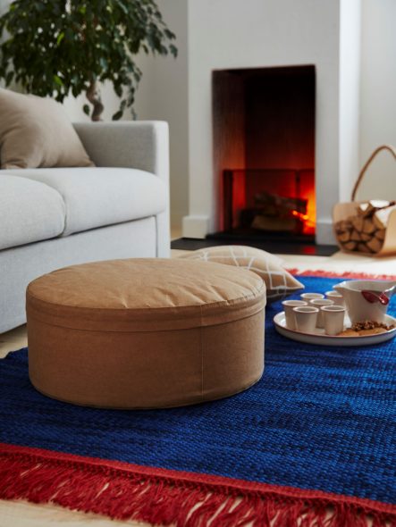 Αυτό το πουφ μοιάζει να είναι φτιαγμένο από δέρμα αλλά στην πραγματικότητα είναι από χαρτί ενισχυμένο με πλαστικό. Η επιφάνειά του γίνεται ακόμα πιο όμορφη με το πέρασμα του χρόνου ενώ το κάλυμμα αφαιρείται και πλένεται στο πλυντήριο.