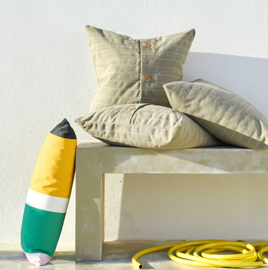Συνέχισε -και πάλι με γεωμετρικά μοτίβα και παλέτες έντονων χρωμάτων από τη σειρά SOMMAR- στο καθιστικό σου, διαλέγοντας πολύχρωμα μαξιλάρια (όπως αυτό ή αυτό τα οποία, αν σου αρέσει η αισθητική του mix n’ match, μπορείς ακόμα και να συνδυάσεις μεταξύ τους).