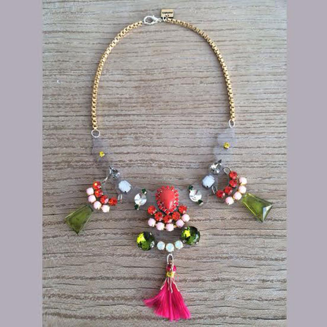 Βάζεις ένα κολιέ και είσαι έτοιμη. Δεν χρειάζεται να σετάρεις μπλούζα με φούστα και ζώνη με παπούτσι. Ό,τι κι αν βάλεις το κόσμημα θα κάνει την εντύπωση. Λυπάμαι. Με τις συγκεκριμένες δημιουργίες η πορεία του βλέμματος των άλλων είναι προκαθορισμένη. Μιλάμε για μονόδρομο.