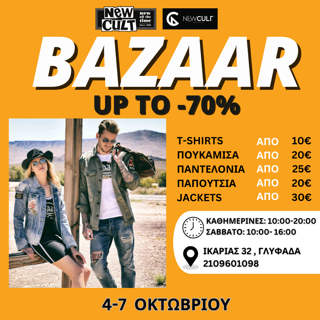 Όπως κάθε χρόνο έτσι και φέτος, τα New Cult οργανώνουν φθινοπωρινό bazaar με προσφορές έως και -70%.